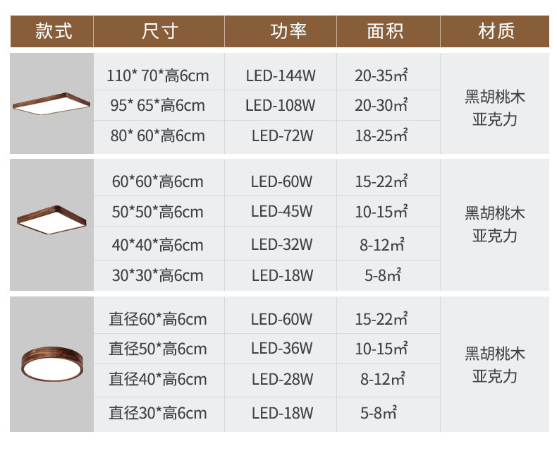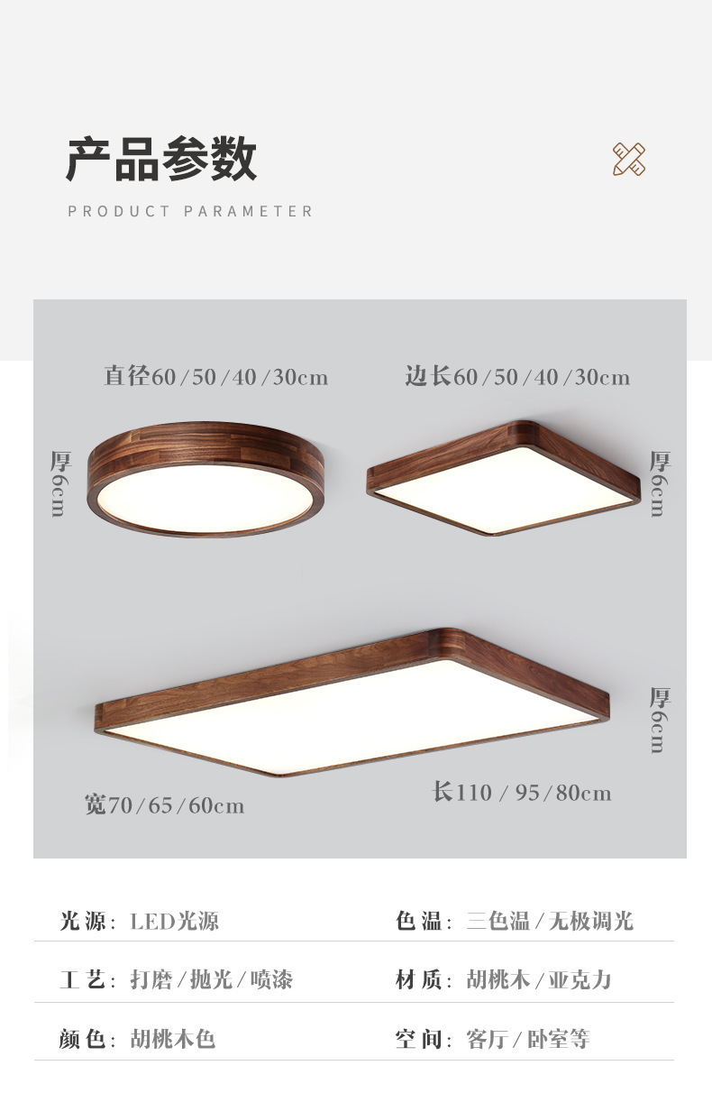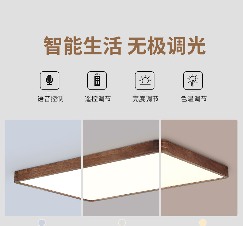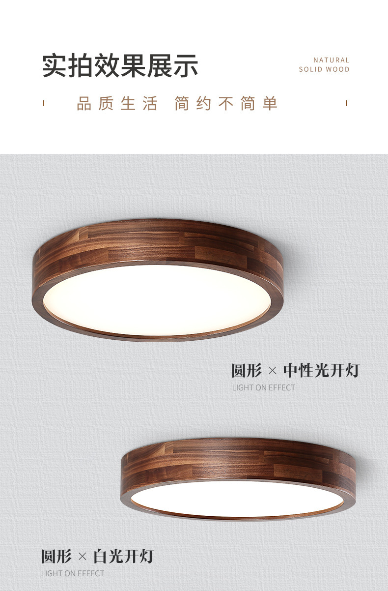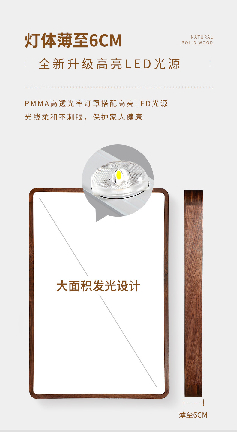 Lámpara de techo de nogal negro Nueva luz de sala de estar de madera maciza de estilo chino Lámpara de dormitorio principal ultrafina de estilo chino Paquete de casa completa