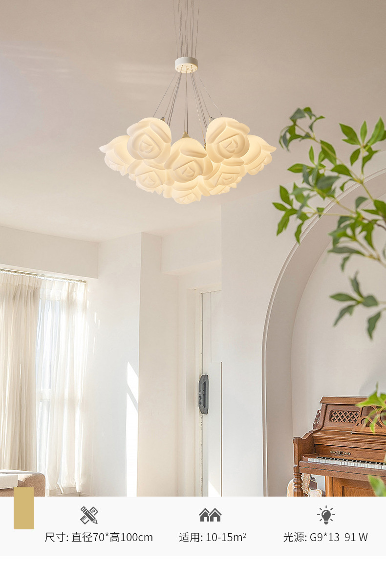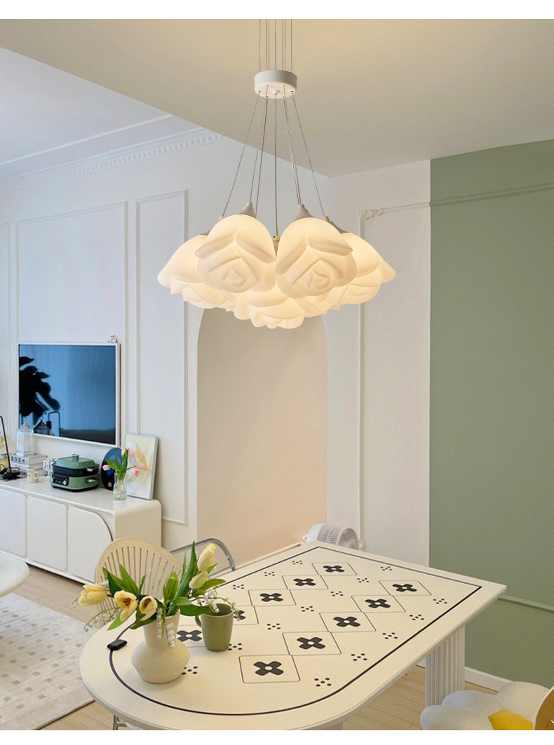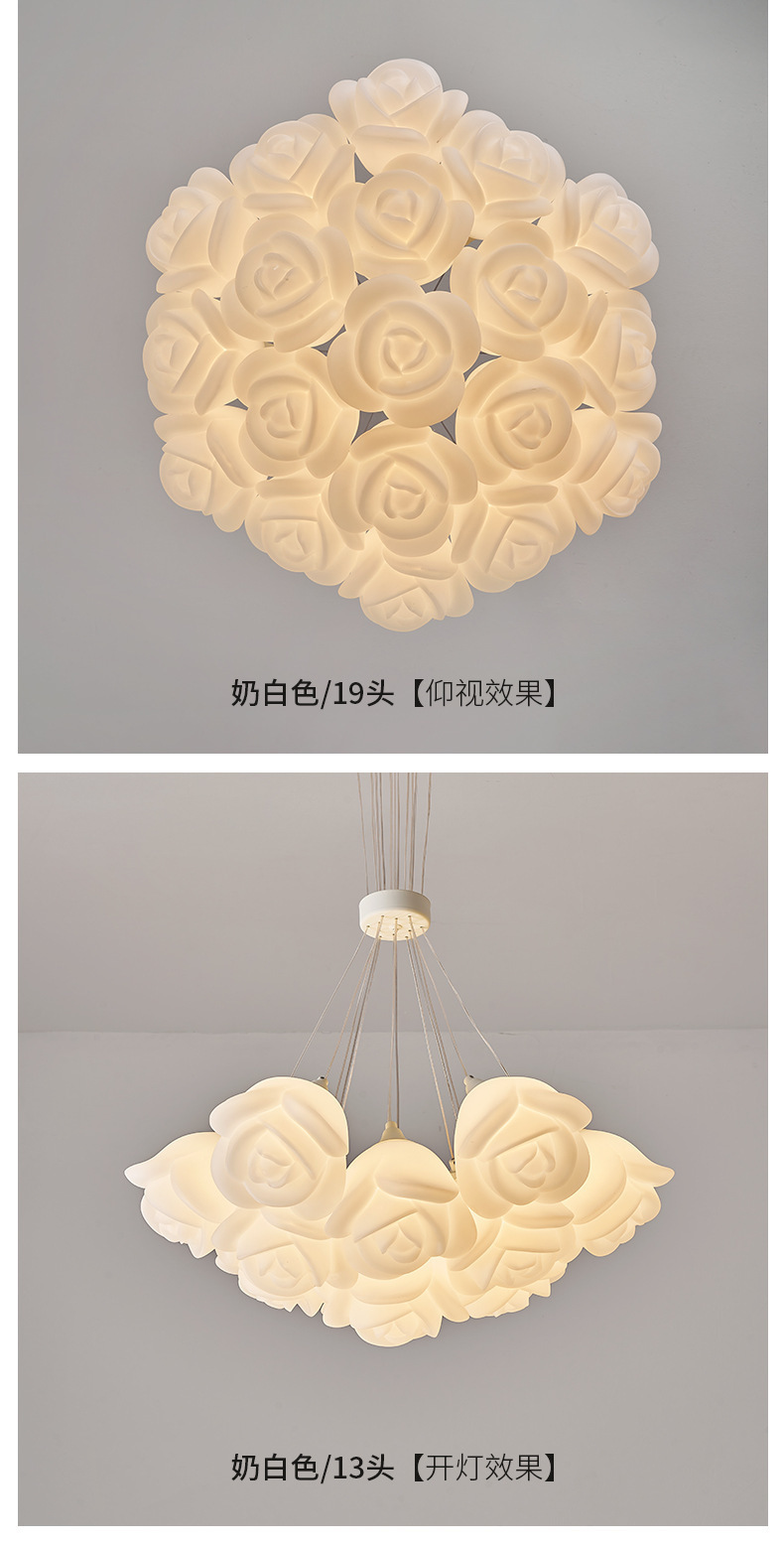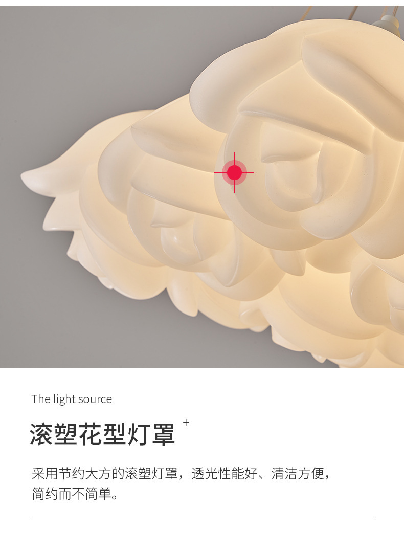 Rojo neto estilo crema flor de rosa creativa candelabro de sala de estar moderno simple romántico dormitorio cálido lámpara de araña de la habitación de los niños