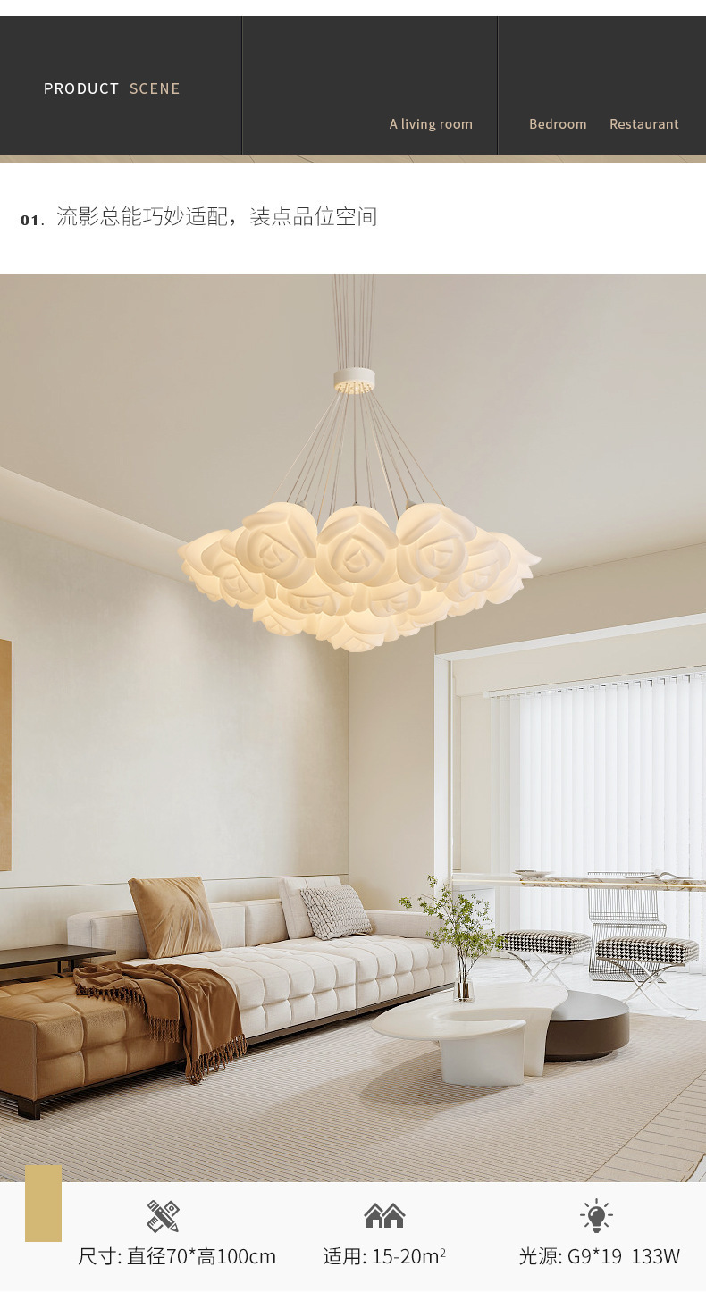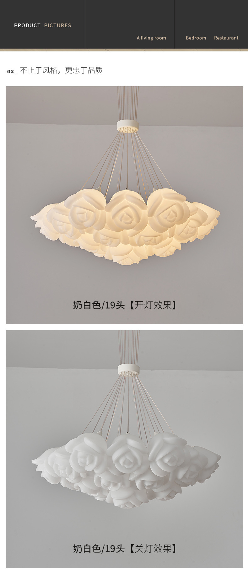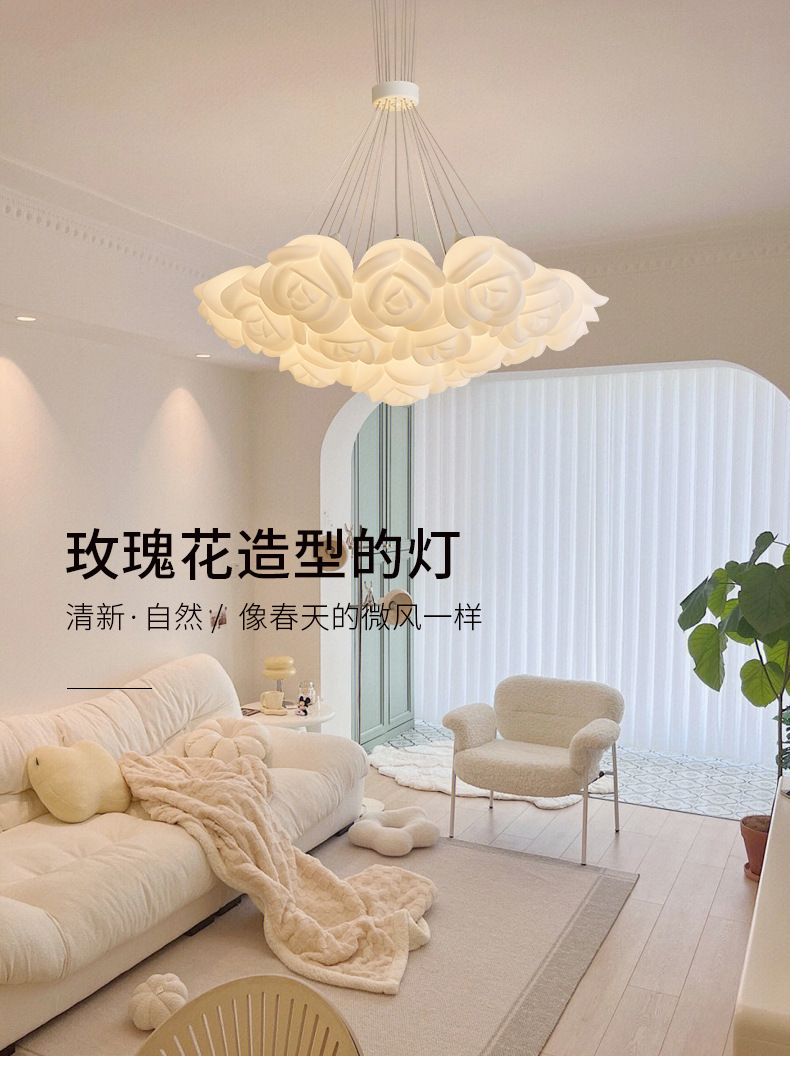Rojo neto estilo crema flor de rosa creativa candelabro de sala de estar moderno simple romántico dormitorio cálido lámpara de araña de la habitación de los niños