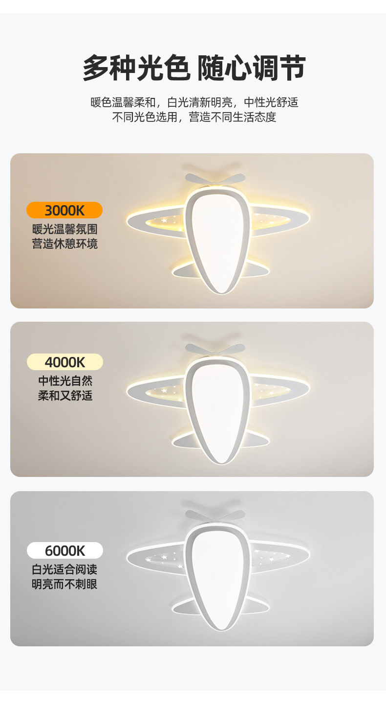 [Estrictamente seleccionado] Lámpara de techo de protección ocular para la habitación de los niños, equipo led de espectro completo, niño y niña, habitación de avión minimalista moderna
