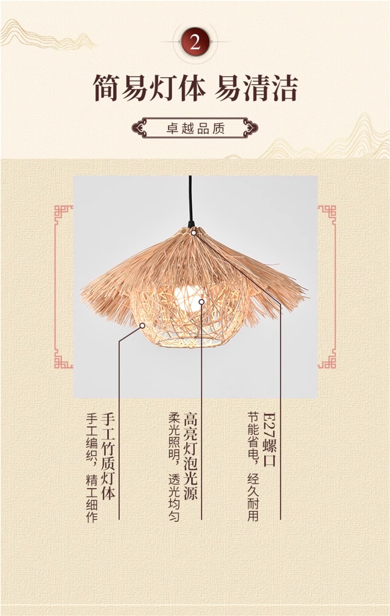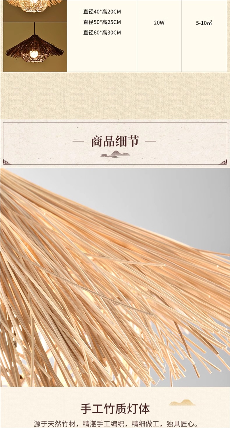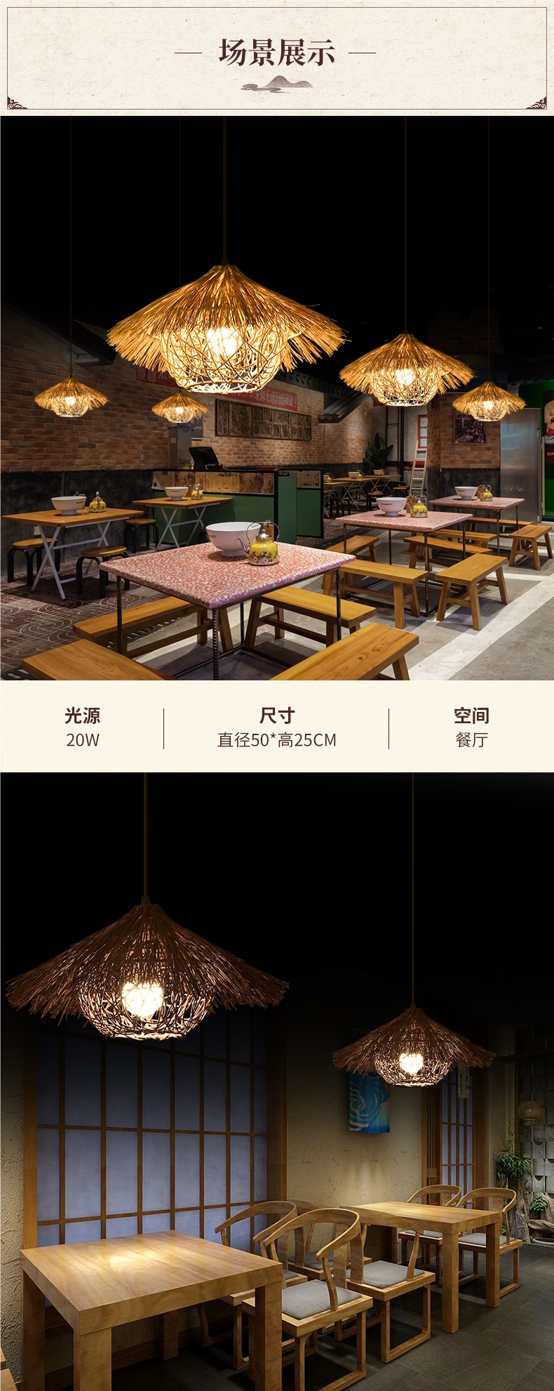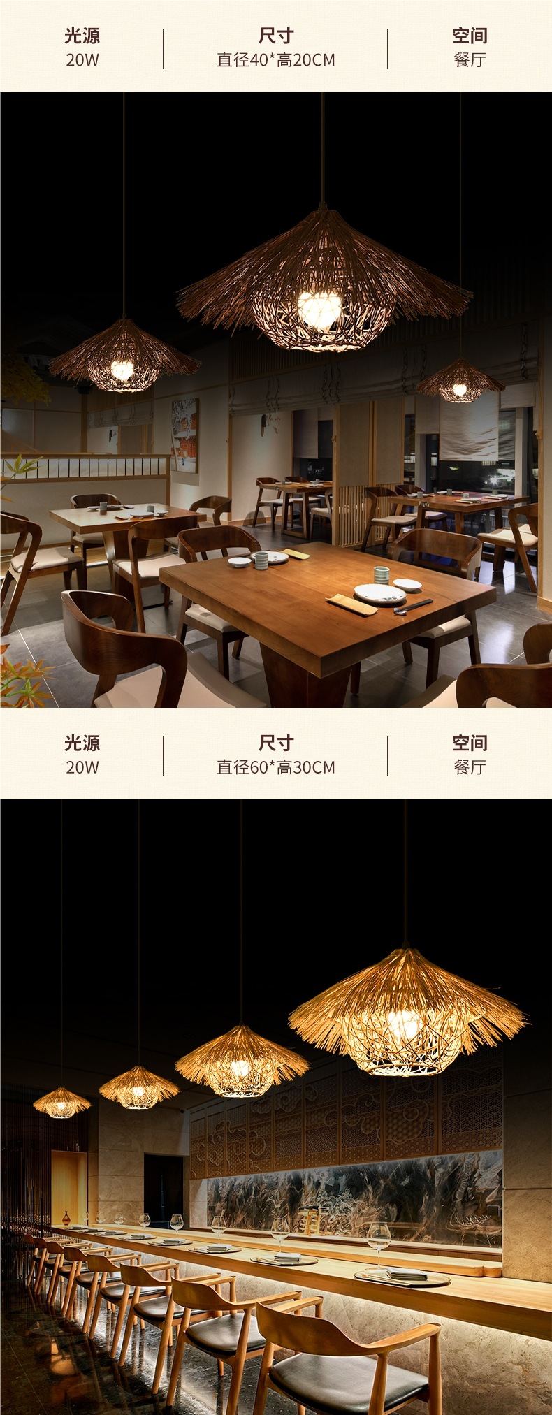Sombrero de paja de ratán creativo, pantalla de lámpara, restaurante japonés retro, restaurante de olla caliente personalizado, arte de ratán, casa de familia, candelabro de bambú del sudeste asiático