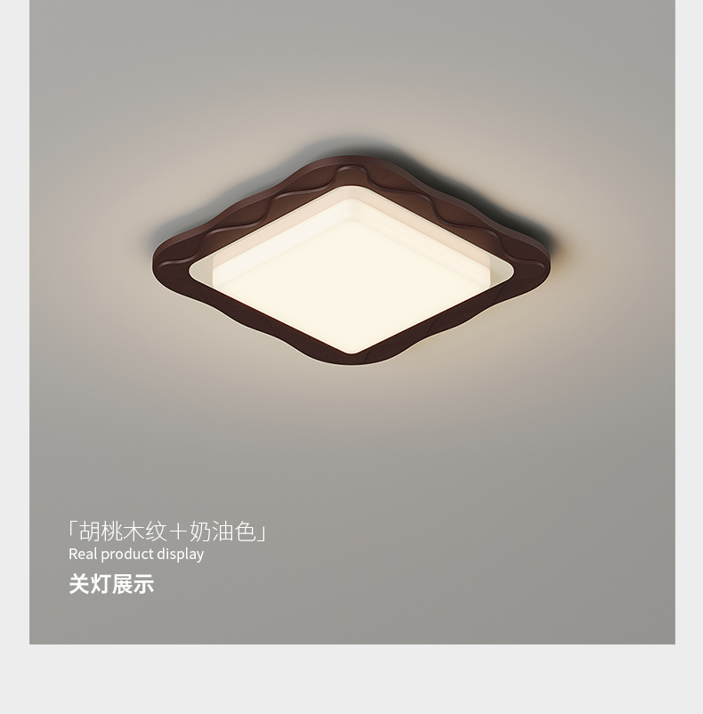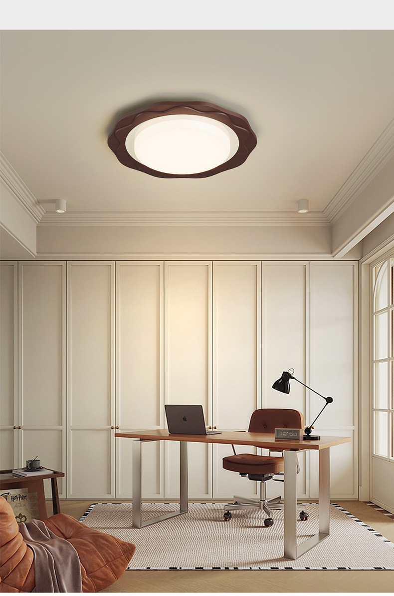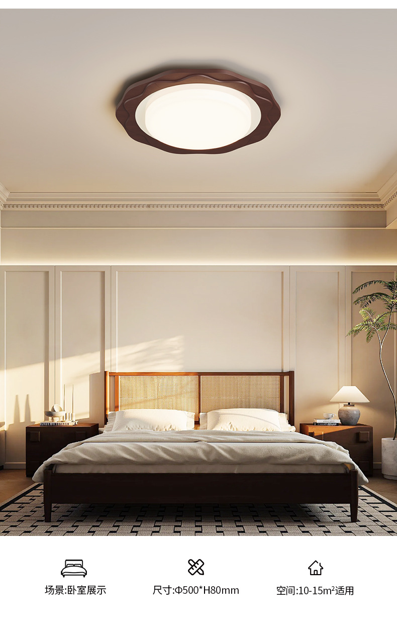 Lámpara principal de sala de estar de estilo antiguo, lámpara de techo de grano de madera de nogal, habitación retro japonesa, dormitorio, base de decoración redonda de madera maciza