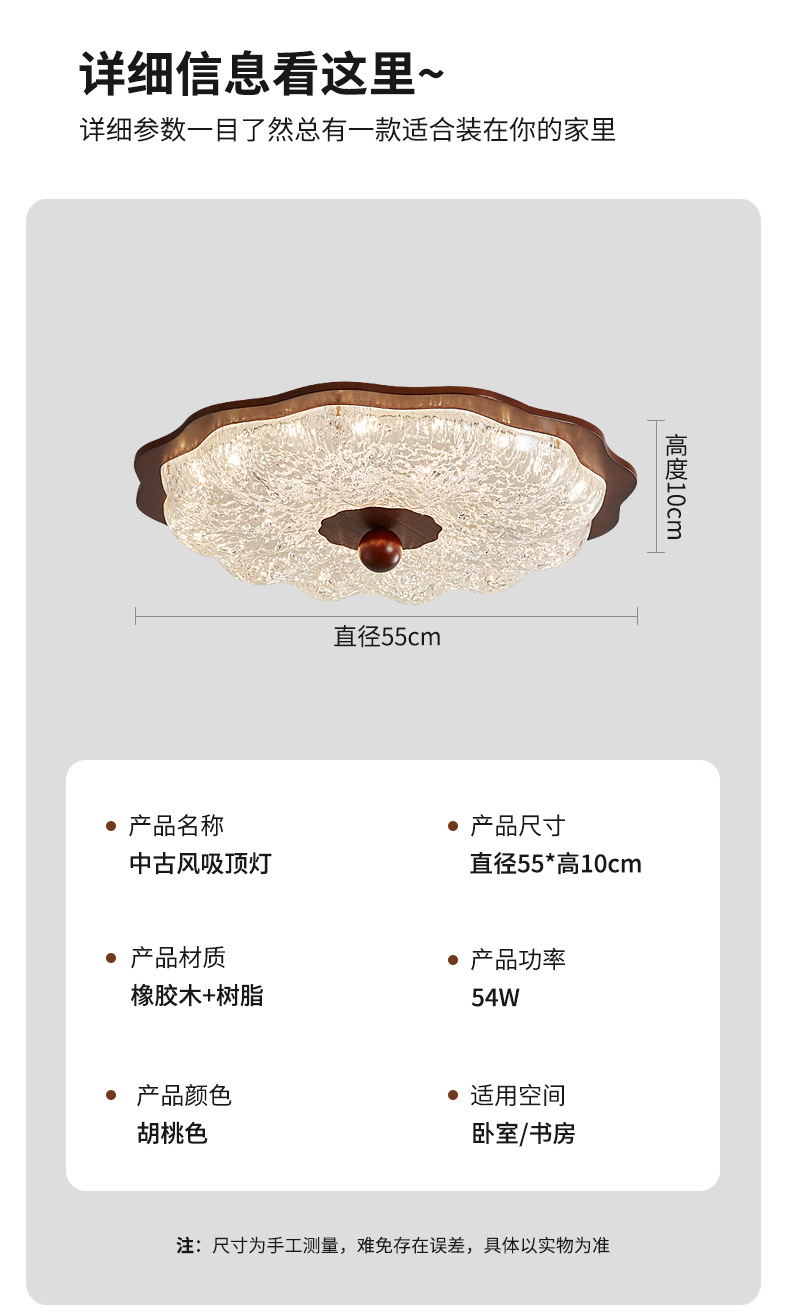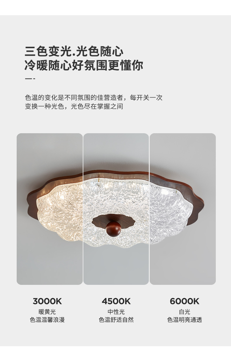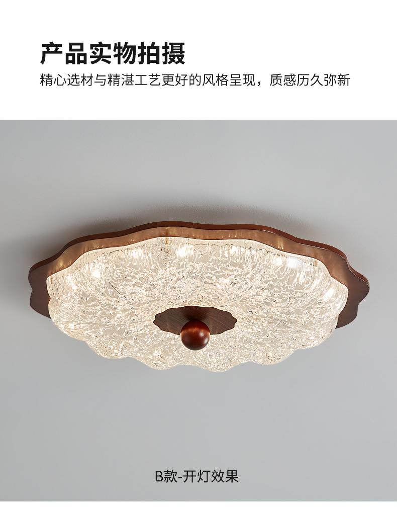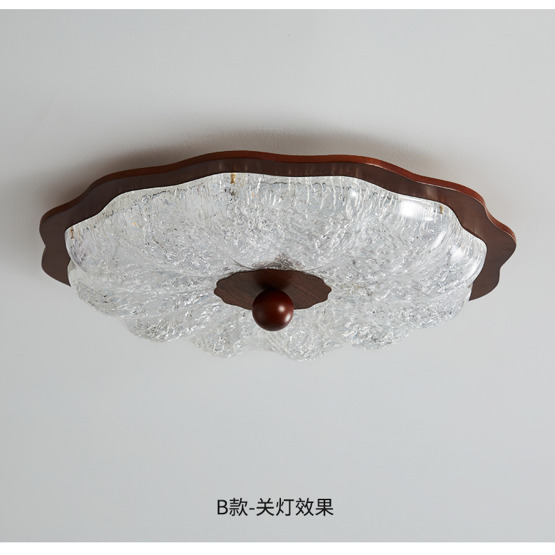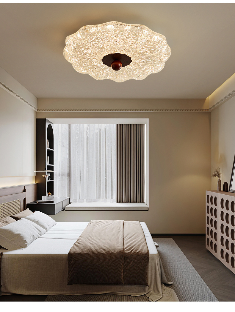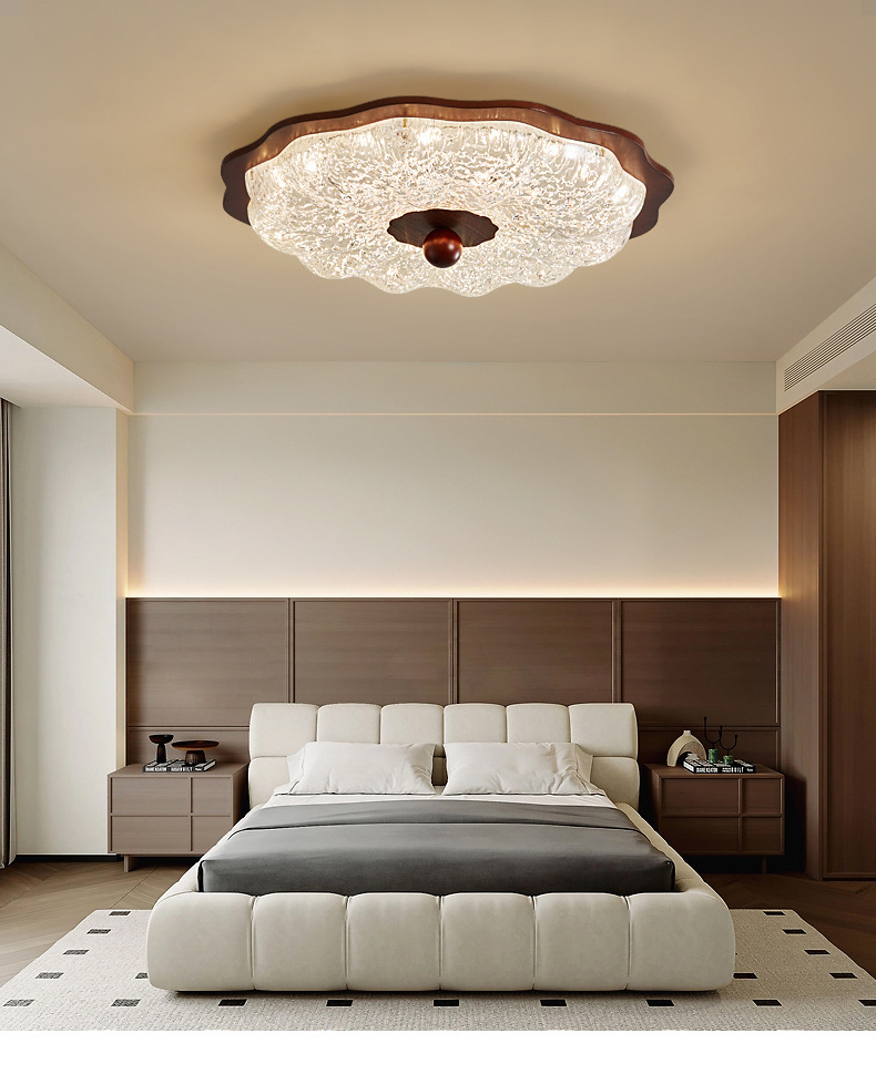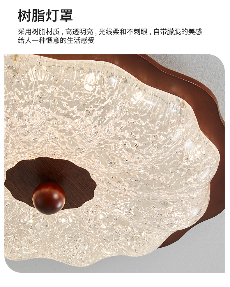 Lámpara de dormitorio, lámpara de techo, lámpara de flor de resina de estilo antiguo, sensación moderna de alta gama, grano de madera de nogal, habitación de protección ocular de lujo ligero