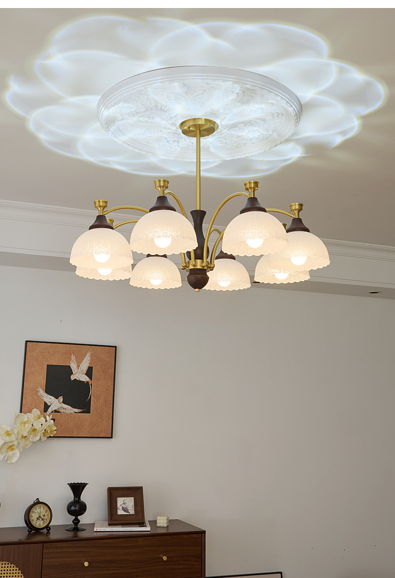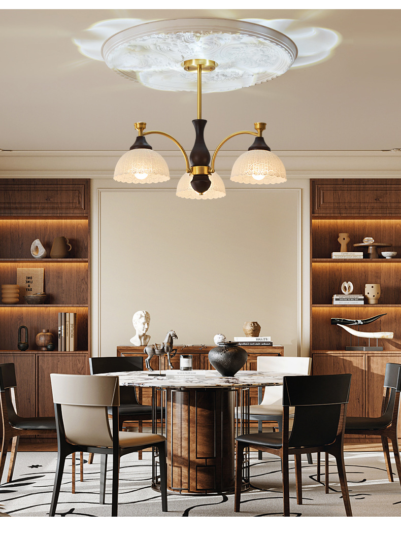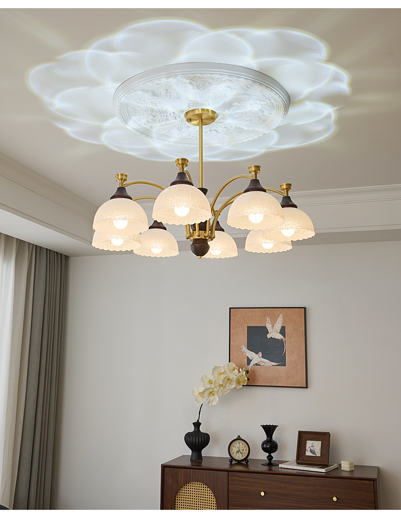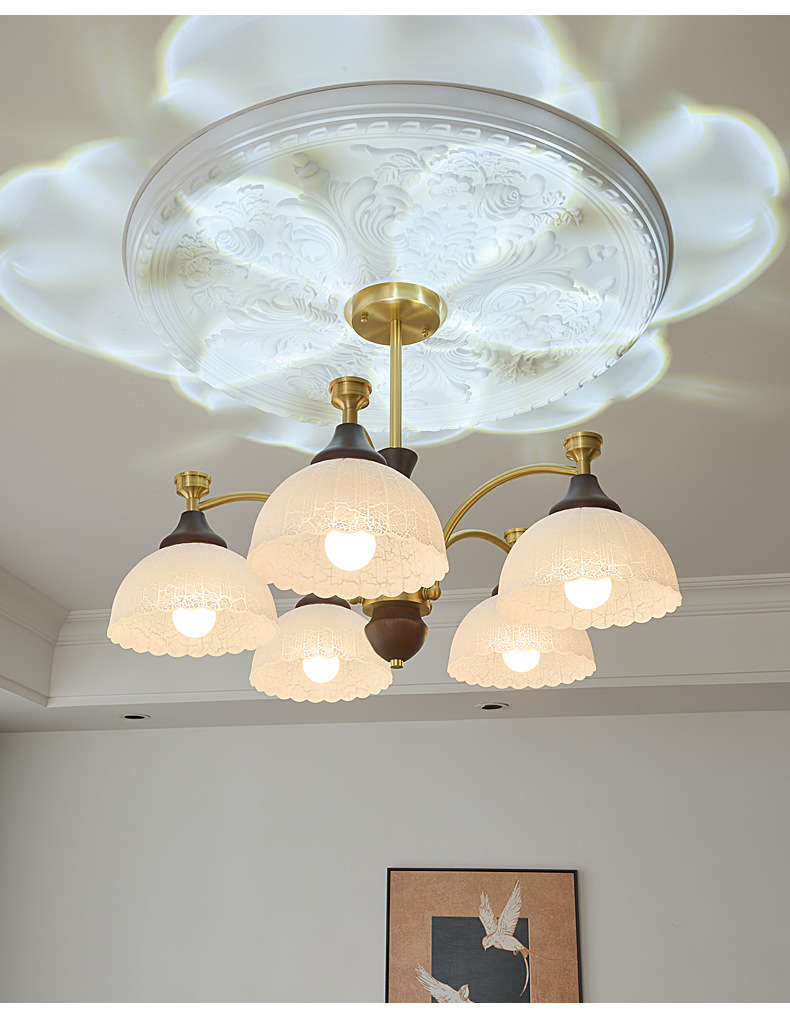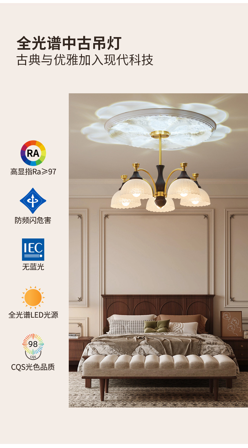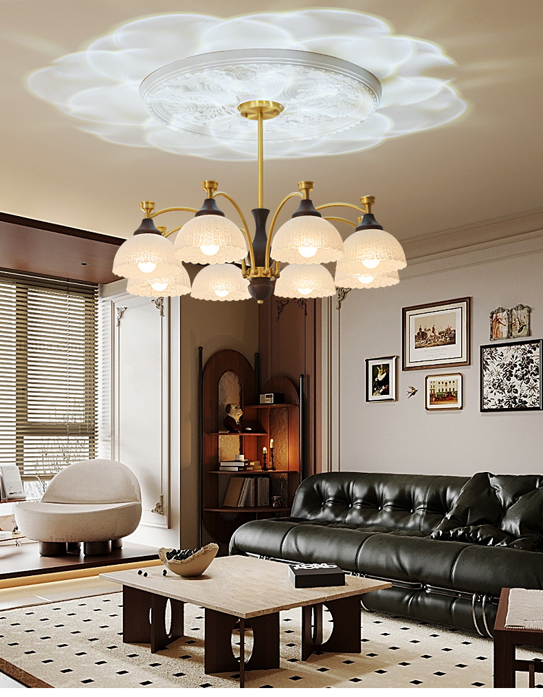 Araña de sala de estar de dormitorio medieval francés simple retro estilo Nanyang creativo de alta gama iluminación de sala de estudio de dormitorio principal de cobre