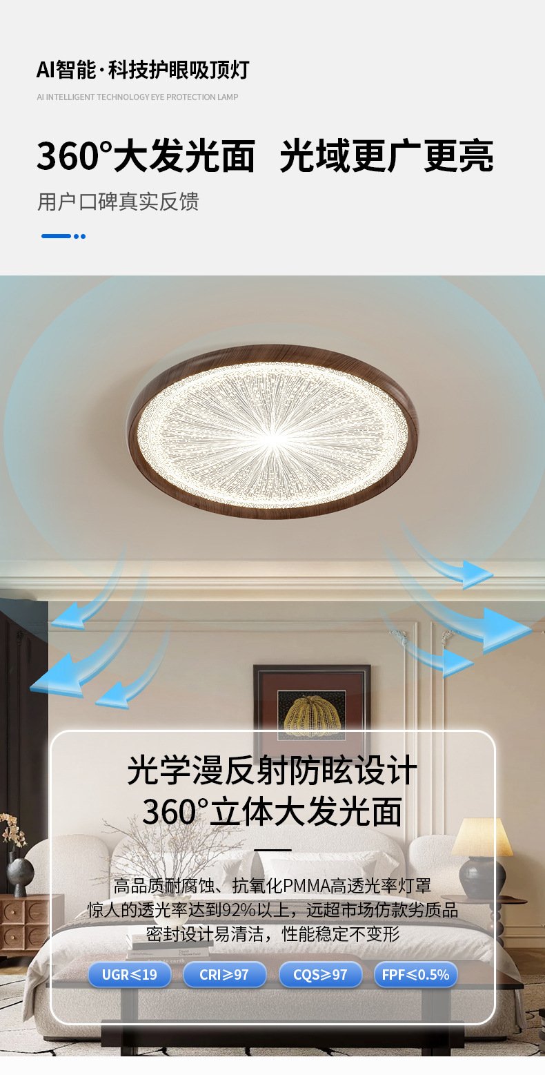 Lámpara de techo LED de espectro completo, protección ocular, sala de estar, dormitorio, comedor, casa antigua, sala de viento silencioso, iluminación Zhongshan moderna