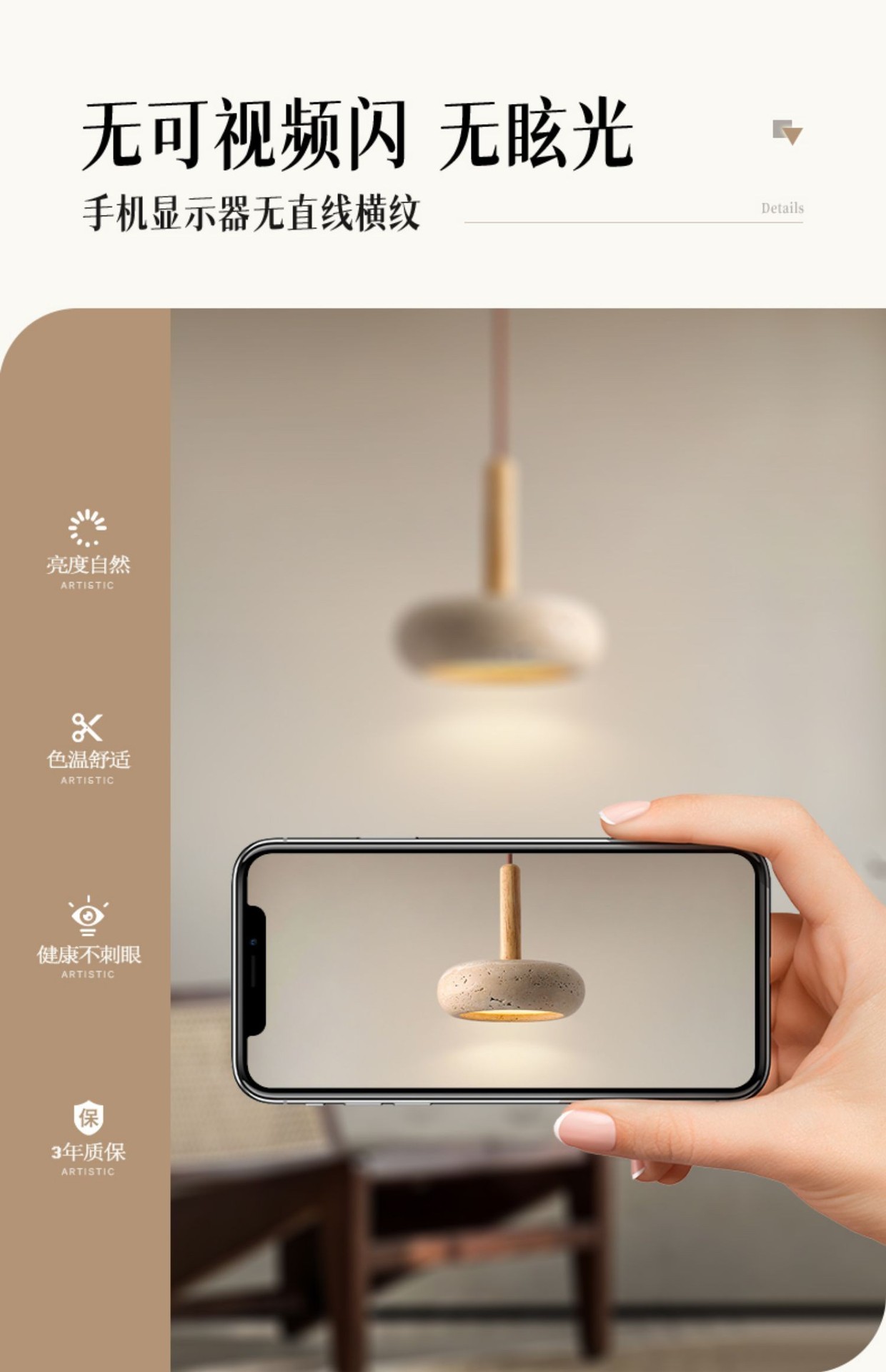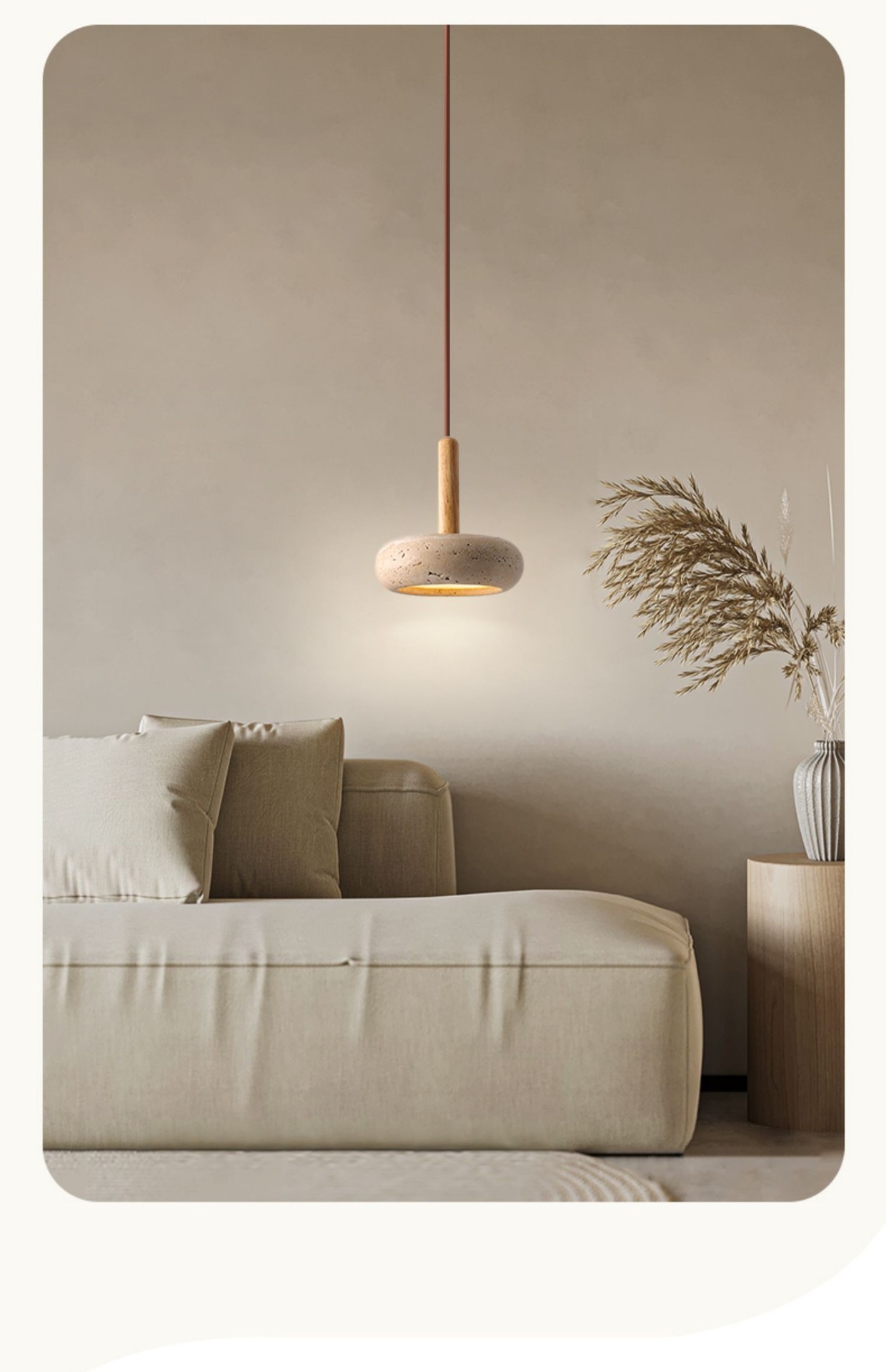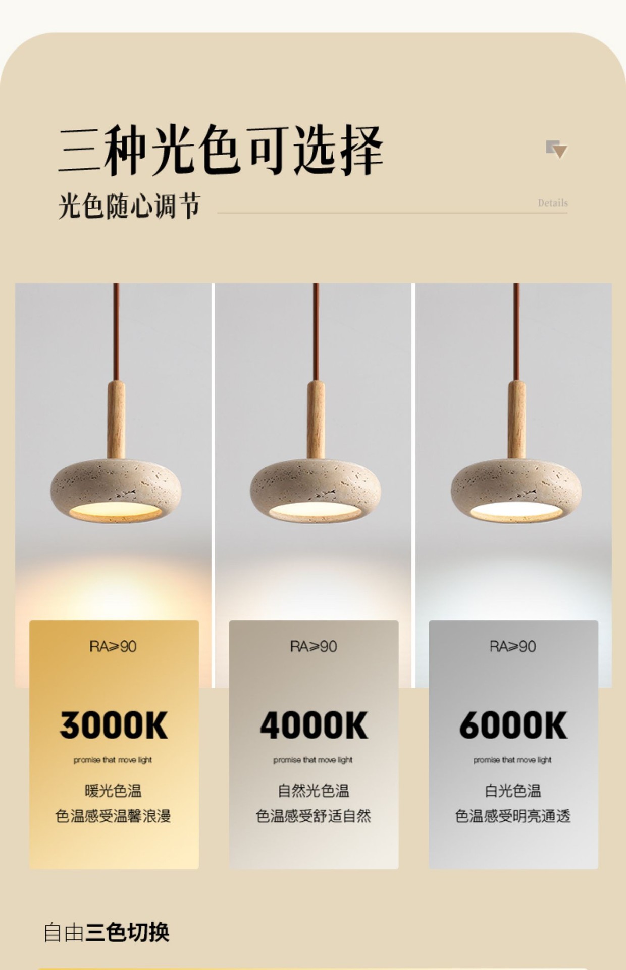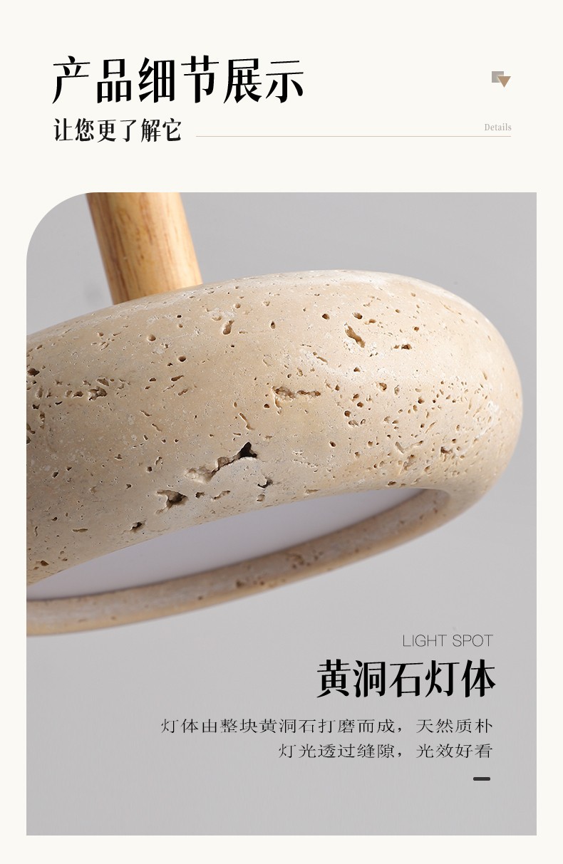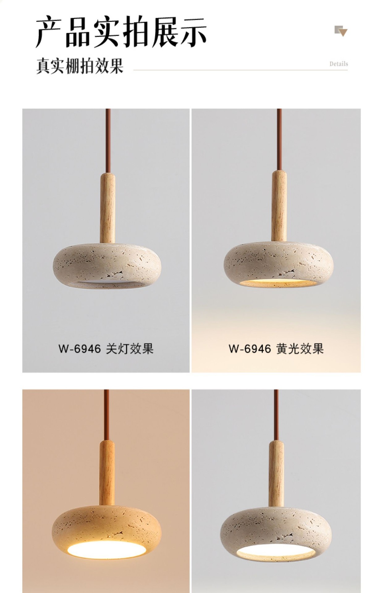 Lámpara de noche de dormitorio, travertino amarillo, lámpara de bar de restaurante de crema retro de estilo japonés, lámpara de araña de habitación principal de dormitorio de Jifeng B & B
