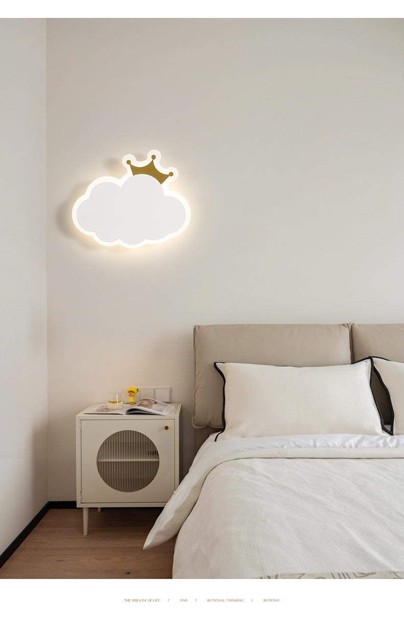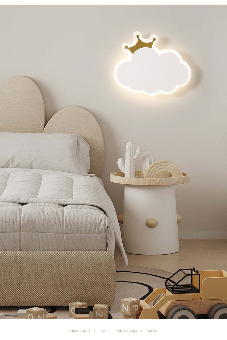 [Seleccionado] Lámpara de pared para niños, niños y niñas, escalera simple moderna, red, corona roja, luz de nube, luz de pared de fondo de habitación