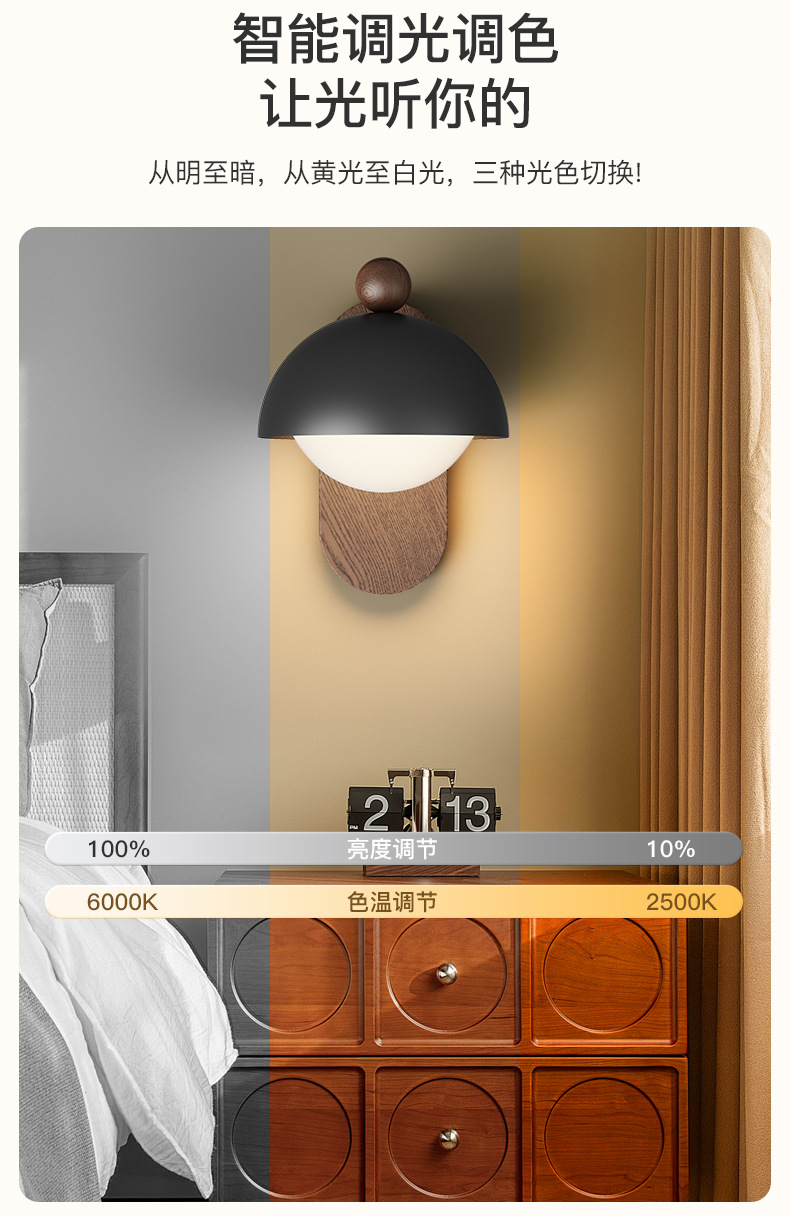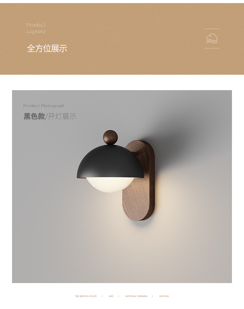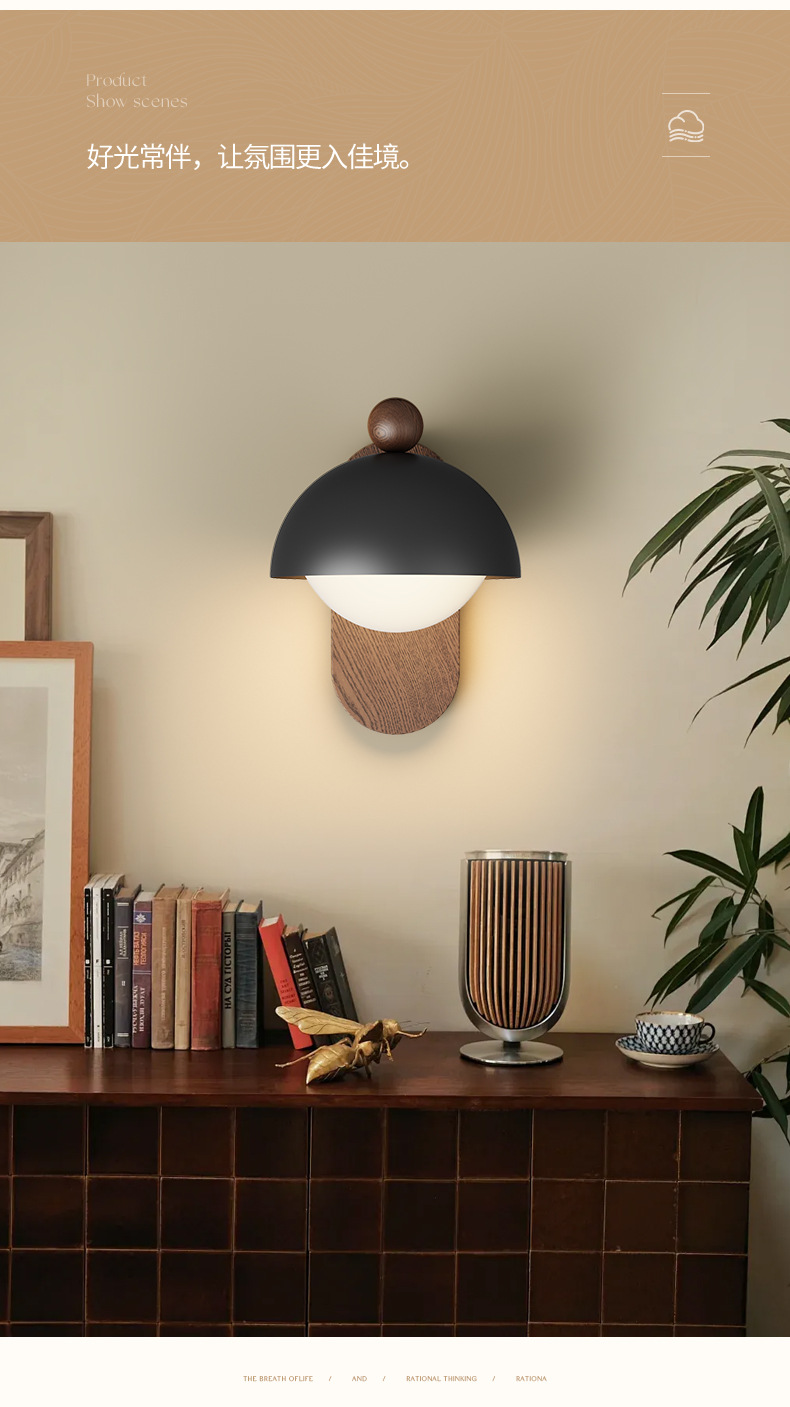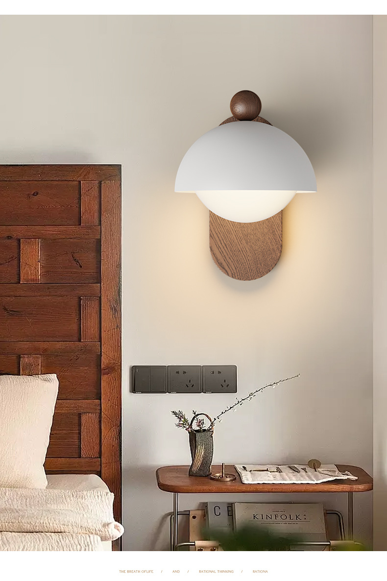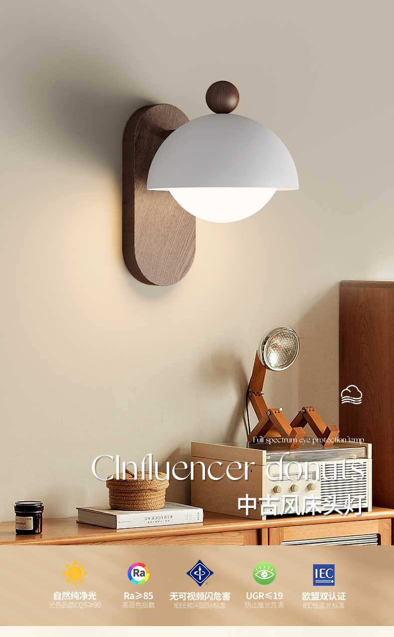 Lámpara de pared de estilo antiguo, lámpara de cabecera de dormitorio, color de nogal retro, wabi-viento silencioso, lámpara de decoración de pared de fondo de sala de estar, lámpara de pared