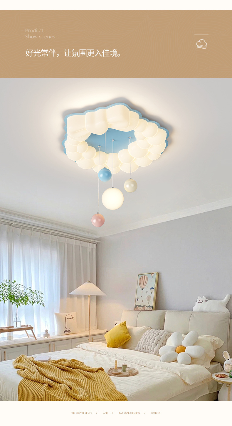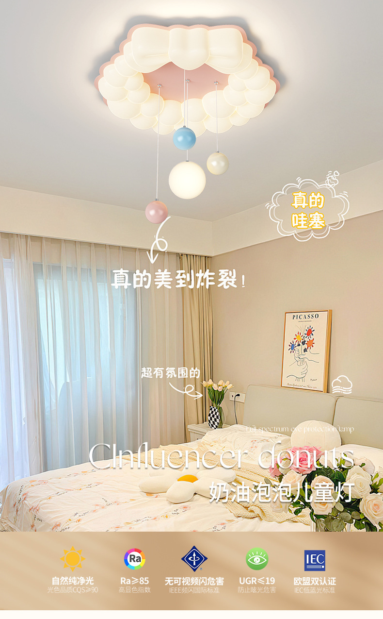 Luz de habitación para niños, niña, princesa, luz de habitación, espectro completo, protección ocular, viento crema, burbuja, luz de dormitorio, luz de techo