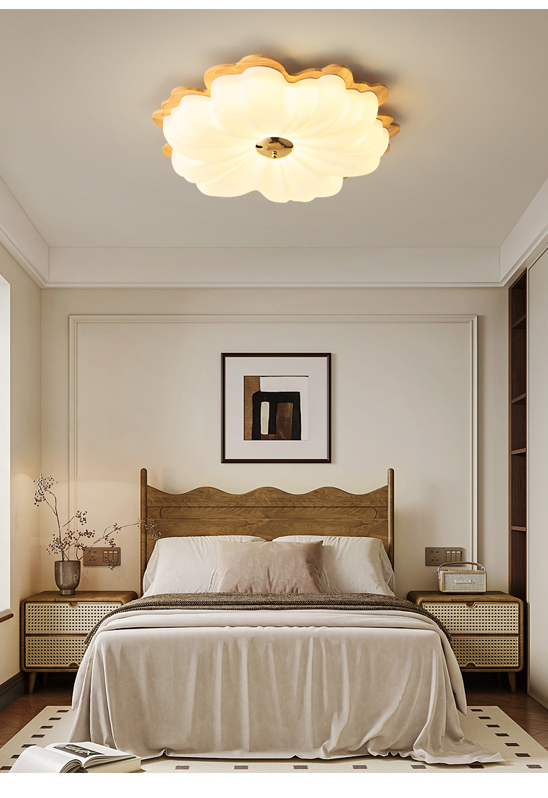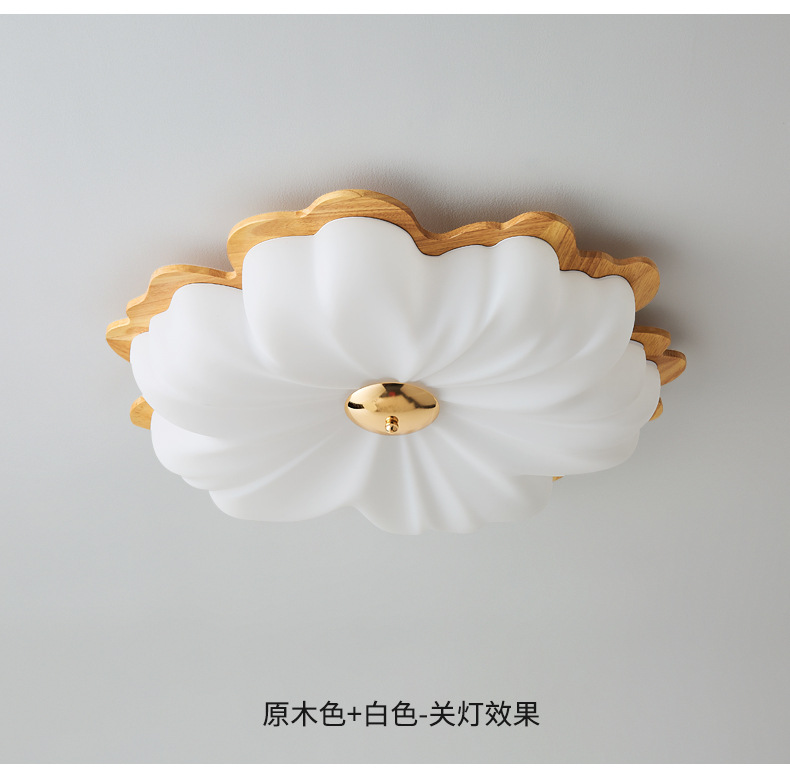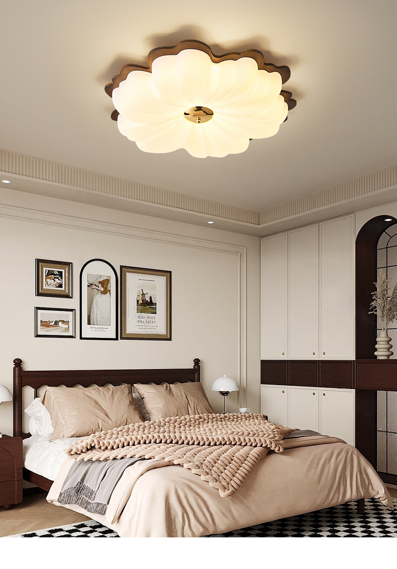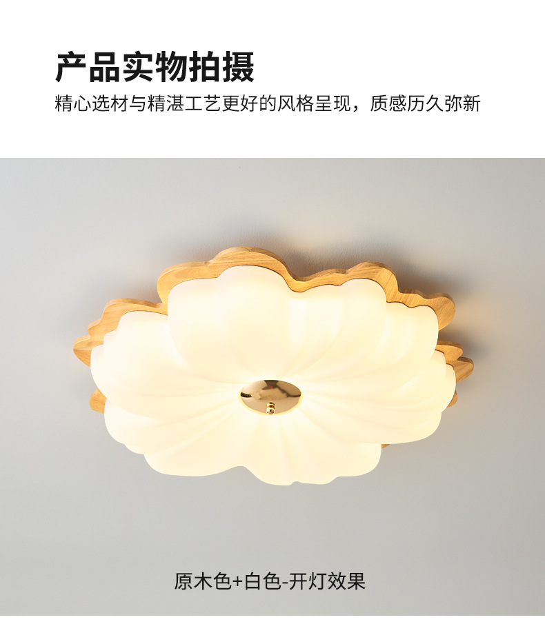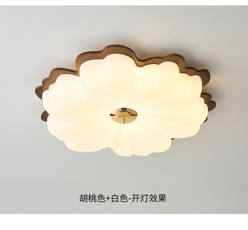 Lámpara de techo de dormitorio de color nogal, pétalos de madera maciza de estilo antiguo, espectro completo, protección ocular, habitación de libro súper brillante, lámpara de habitación para niños