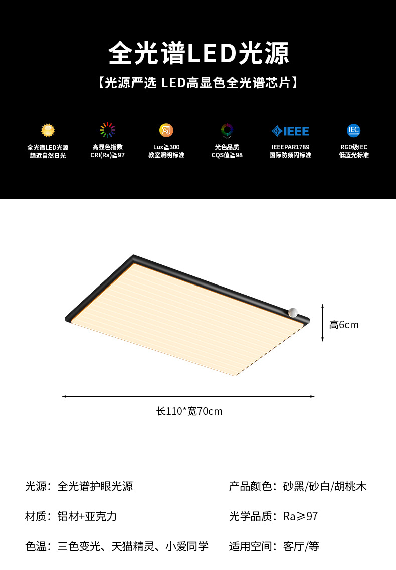 Lámpara de sala de estar de estilo medio, troncos súper brillantes, sensación de alta calidad, nueva lámpara de techo ultrafina de sala de protección ocular de color nogal chino