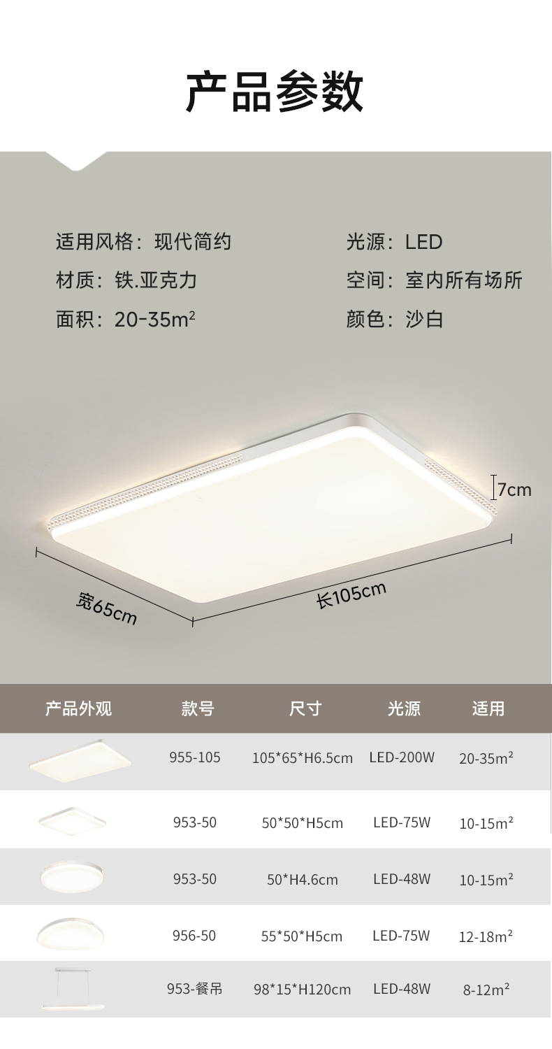 Luz principal de la sala de estar 2025 nuevo paquete de iluminación de techo de protección ocular de tres dormitorios y dos pasillos moderno y simple para toda la casa