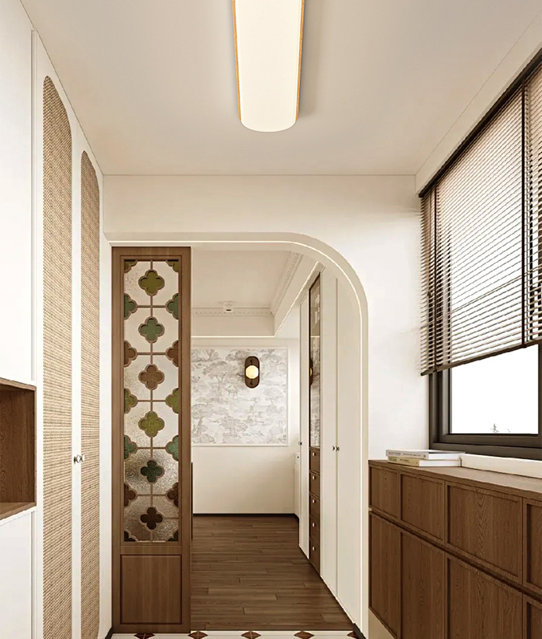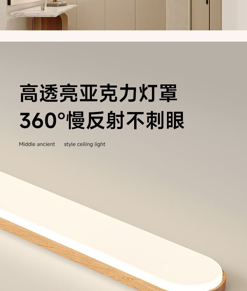 Pasillo de viento de mediana edad, lámpara de techo, protección ocular, pasillo de entrada largo, estilo japonés, viento silencioso, cálido color madera, lámpara Zhongshan
