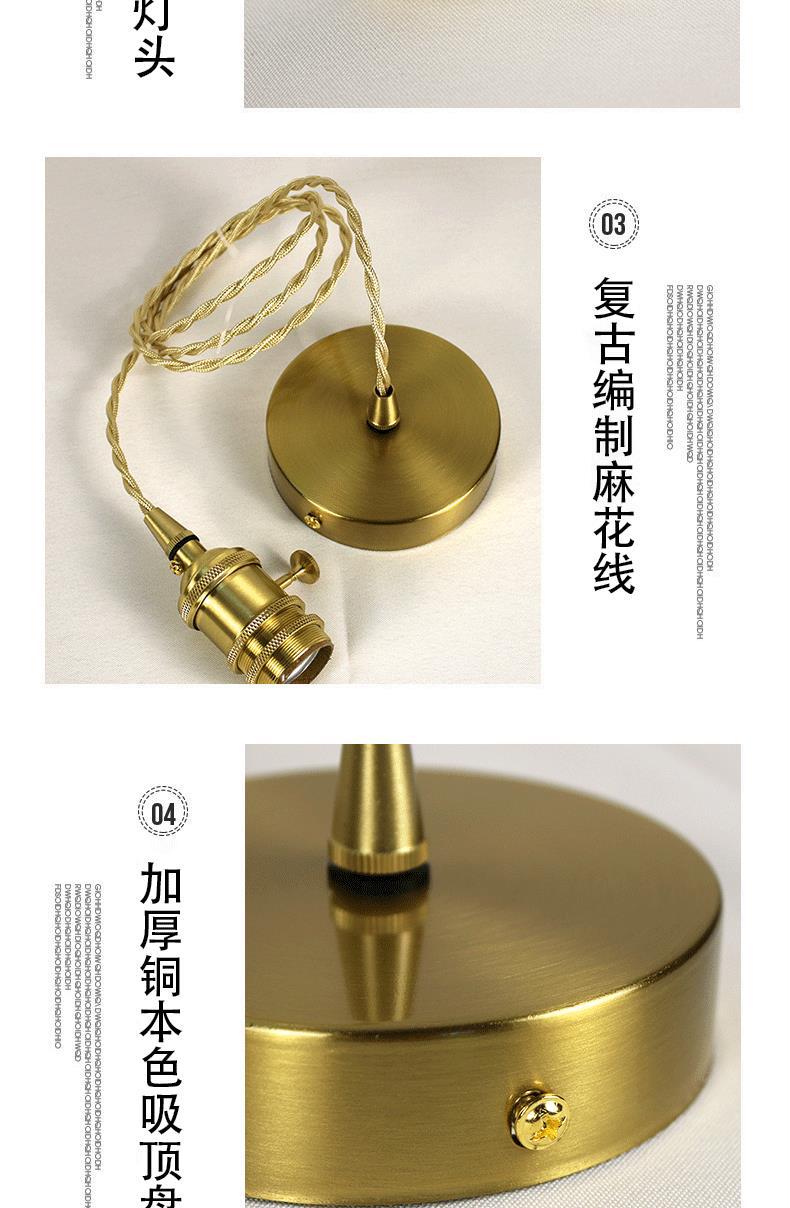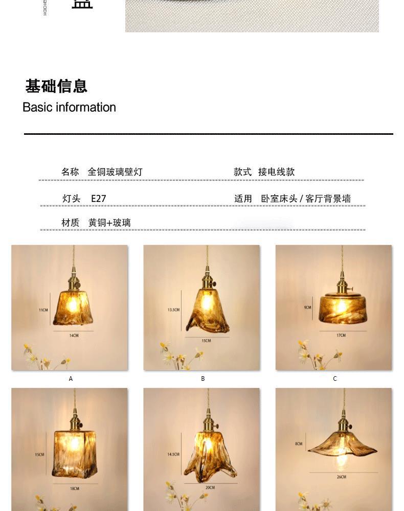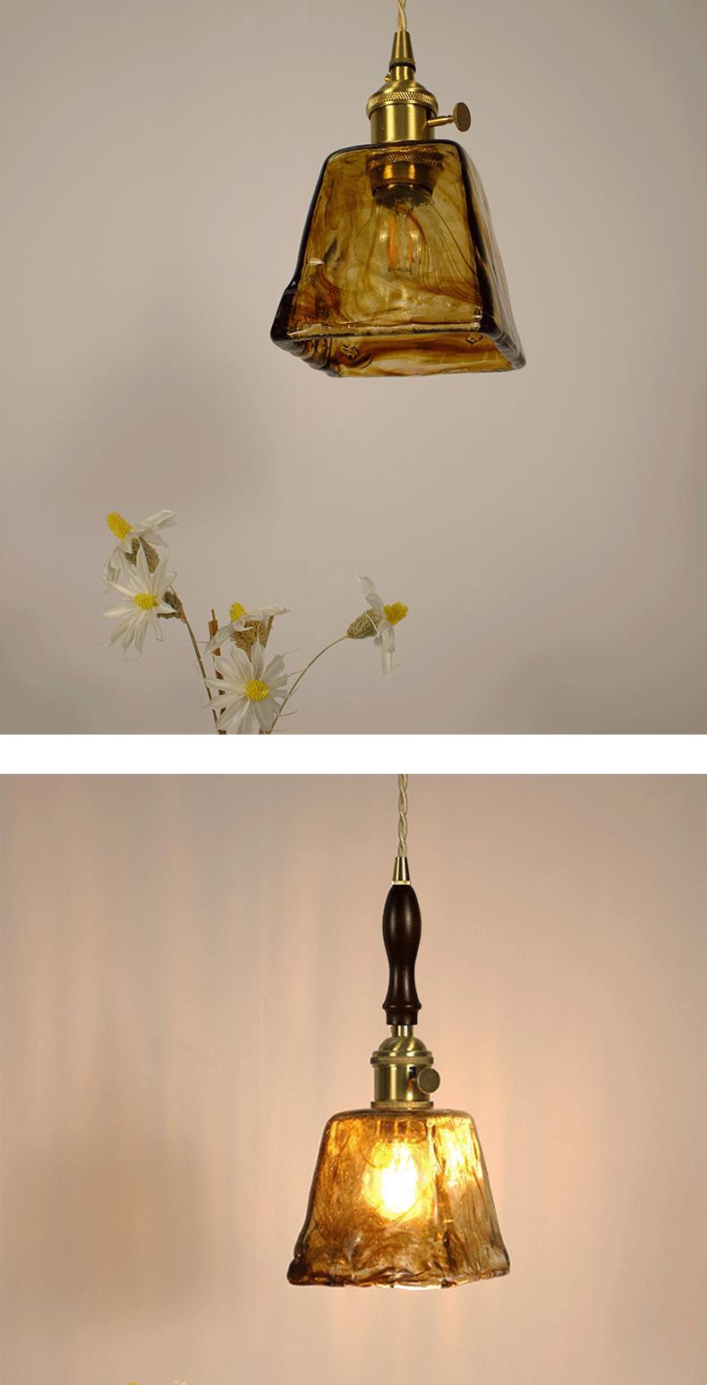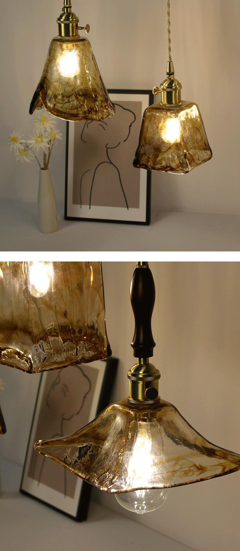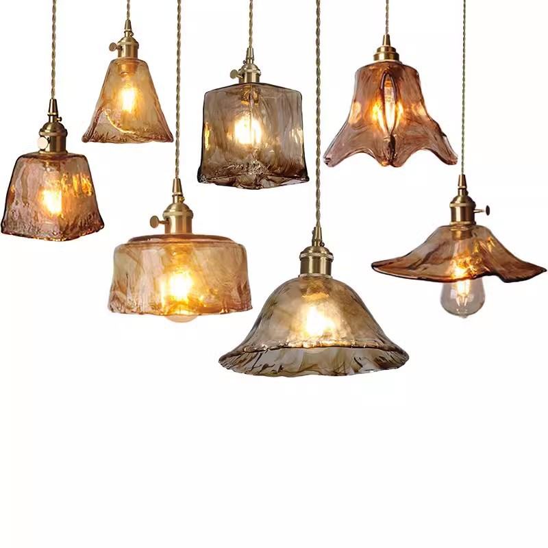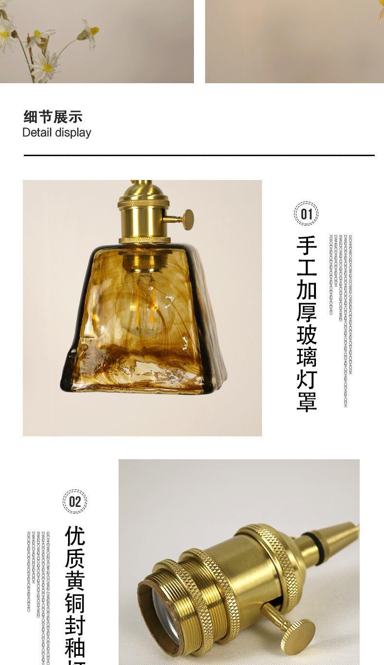 Lámpara de vidrio de ámbar retrógrado de latón nostálgico estilo tranquilo dormitorio dormitorio comedor bar portail candelabro