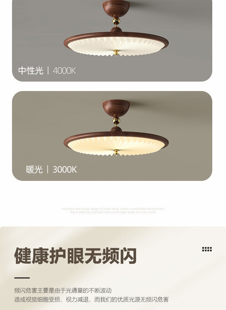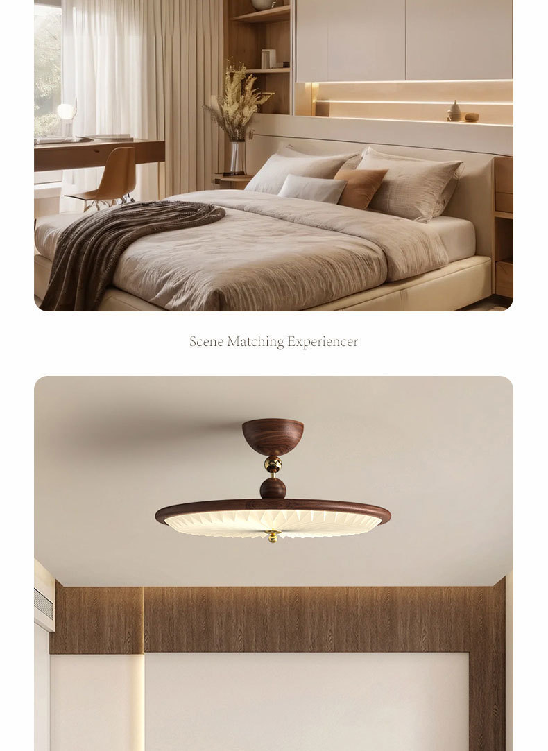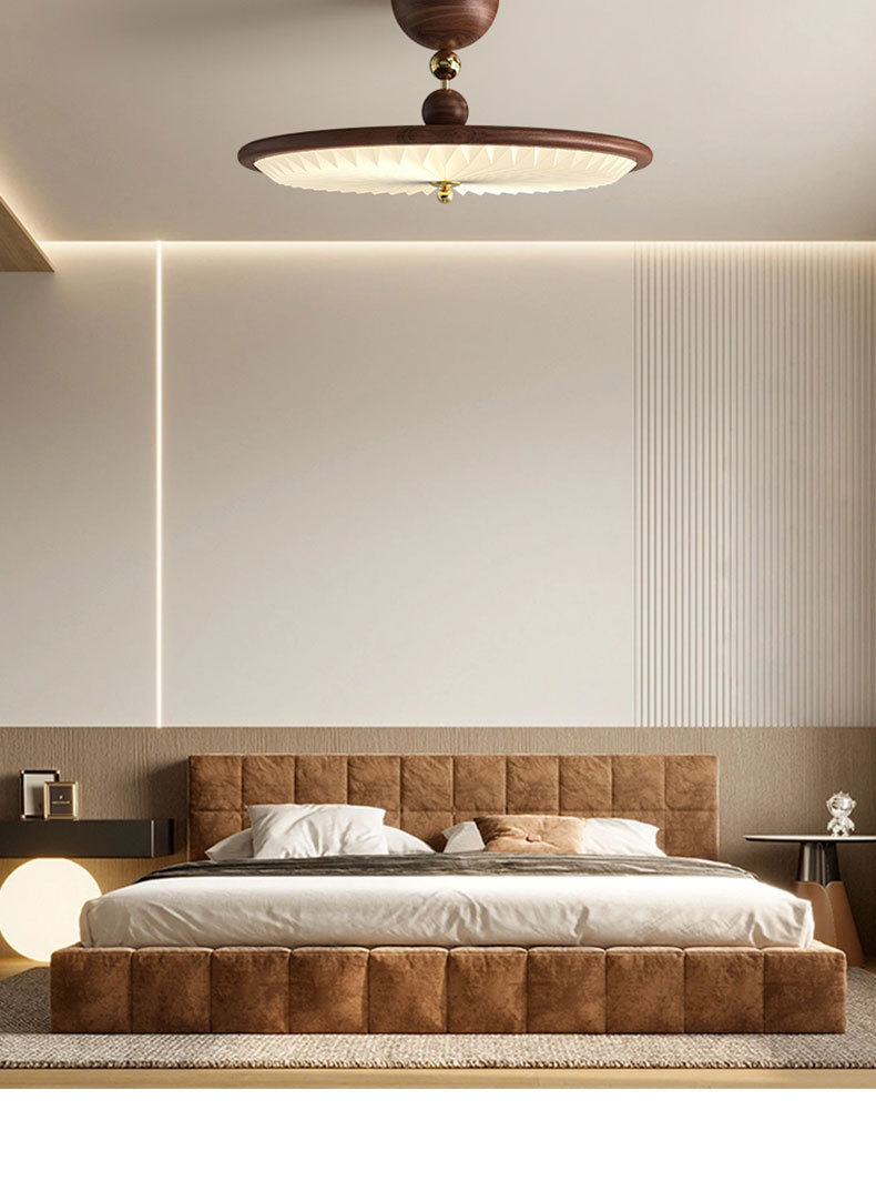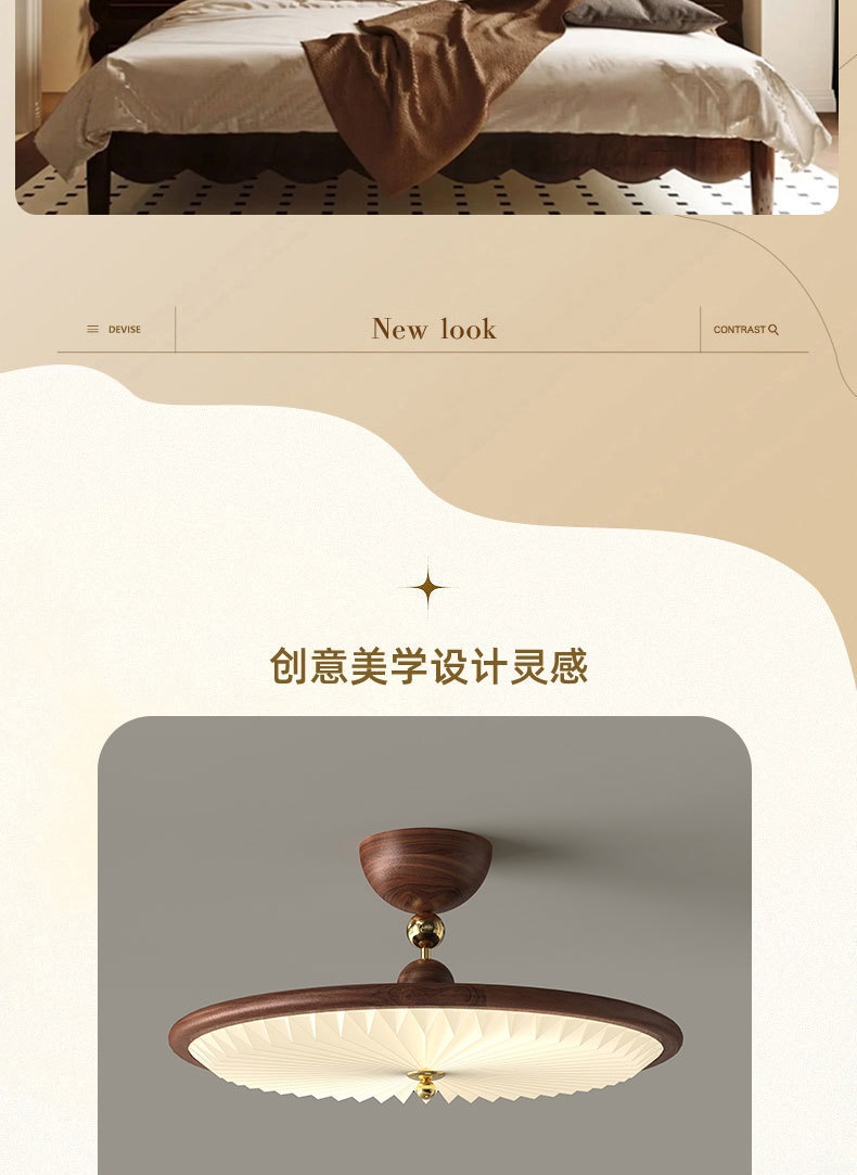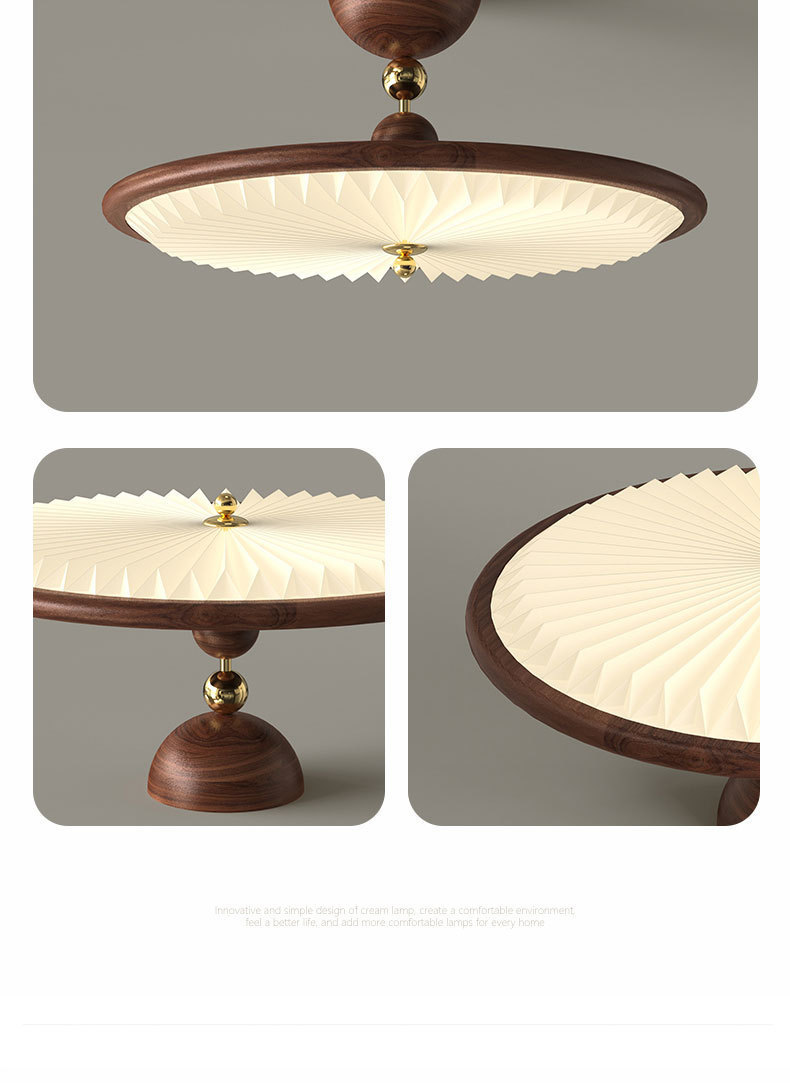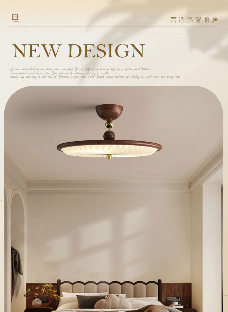 Candelabro de techo plisado para dormitorio principal de estilo medio Estilo japonés Estilo americano Retro nogal Color Nueva lámpara de habitación de dormitorio chino