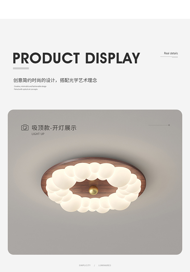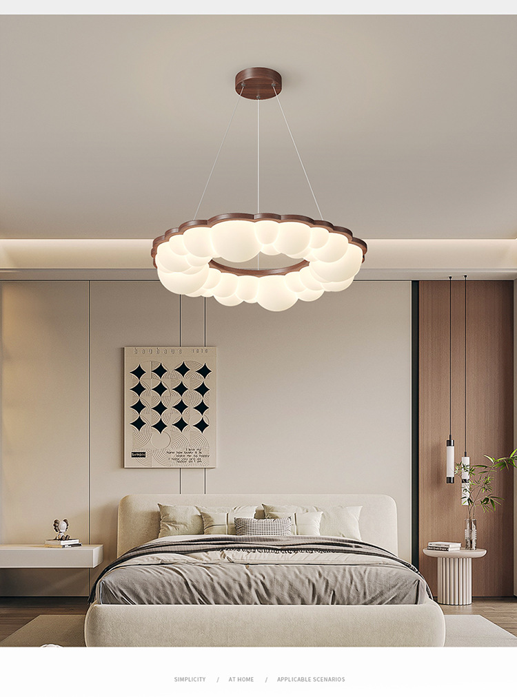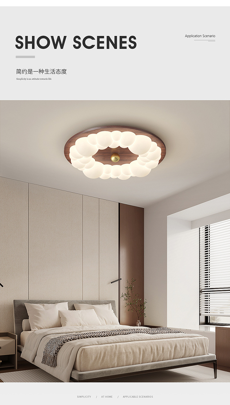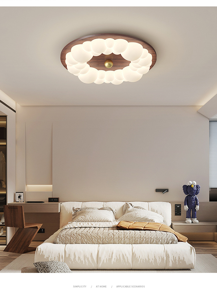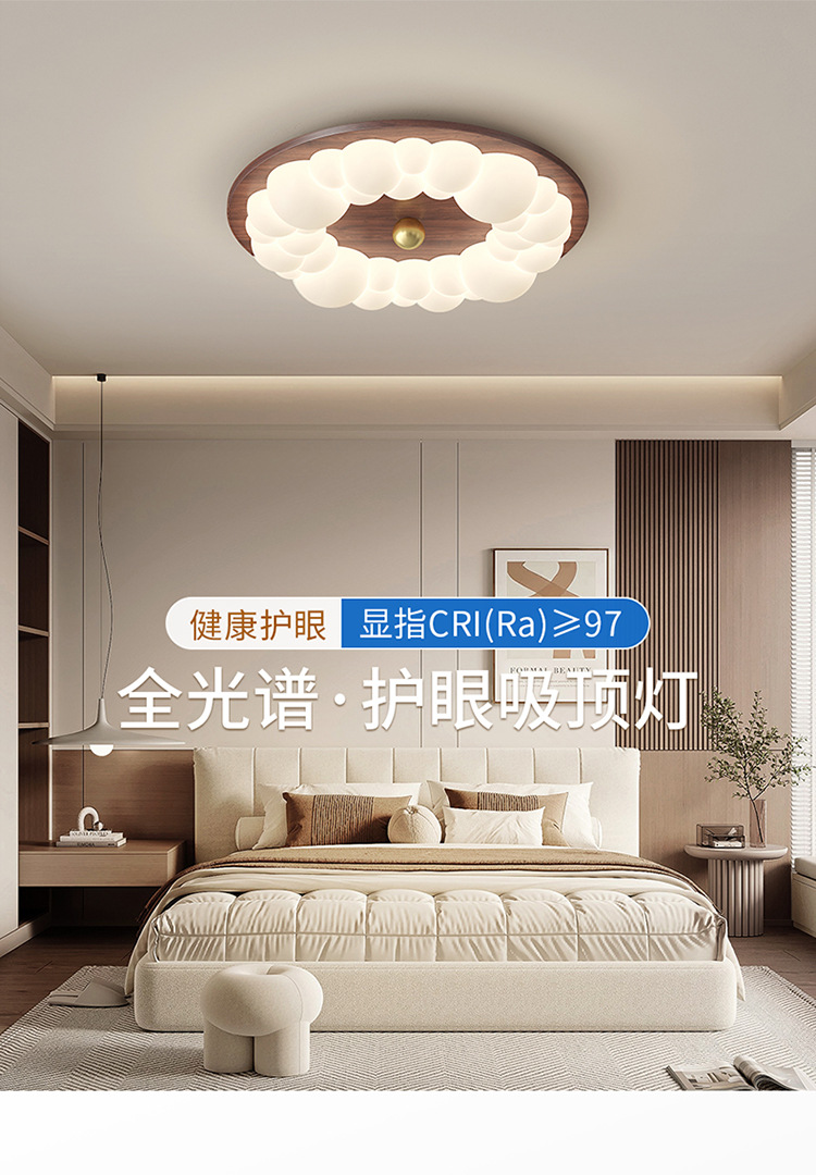Lámpara de techo de dormitorio de grano de madera retro, lámpara de dormitorio principal de viento de tronco de burbuja, lámpara de habitación de diseño de atmósfera moderna simple