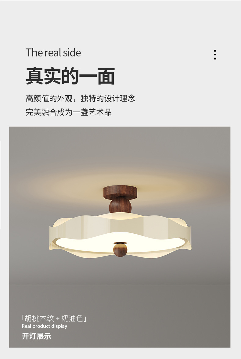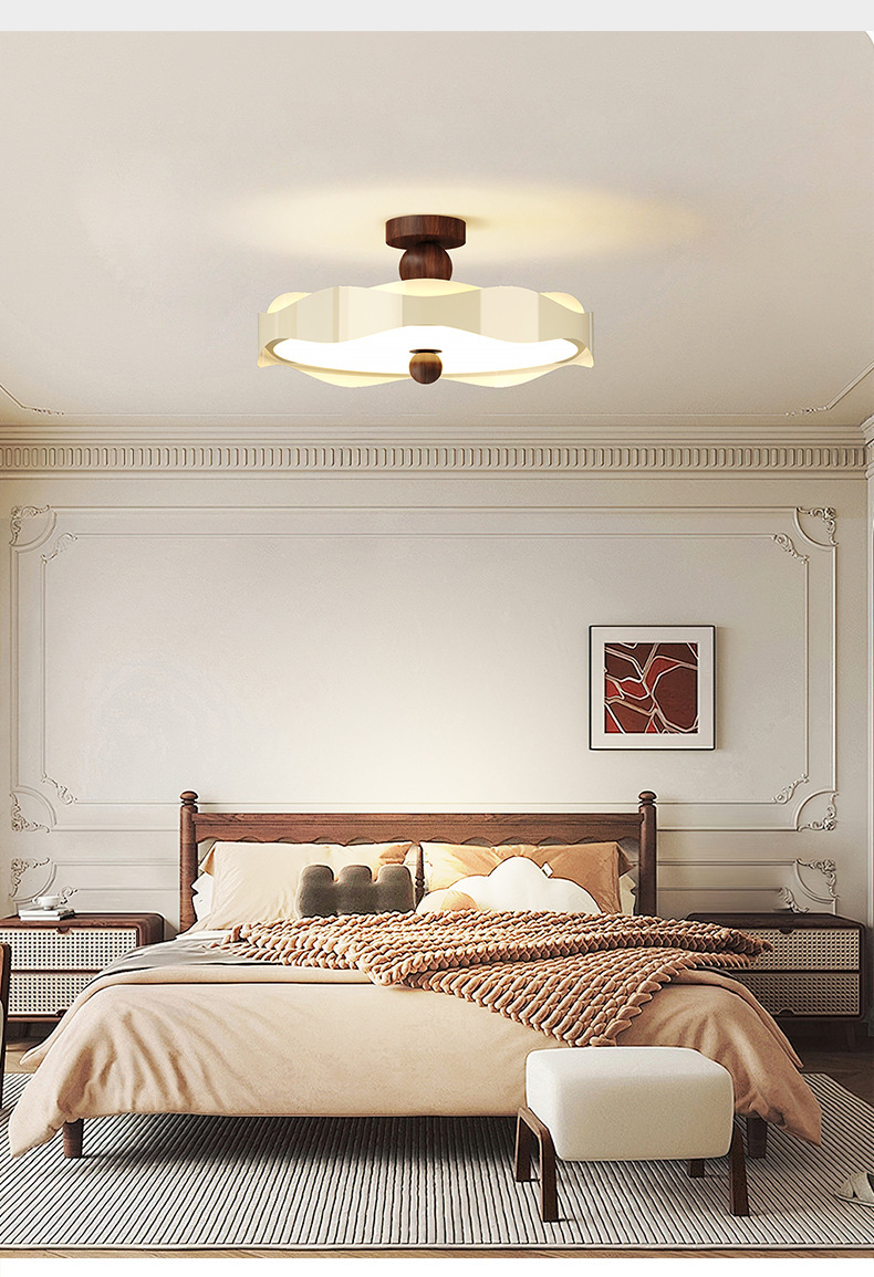 Lámpara de dormitorio medieval francesa estilo crema estilo retro patrón de nuez dormitorio principal lámpara de techo