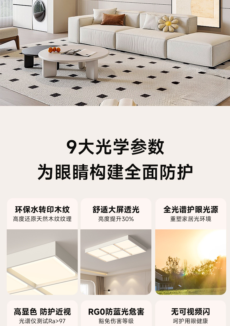 2025 nueva iluminación principal de la sala de estar moderna y simple iluminación de la atmósfera del dormitorio paquete de toda la casa luz de techo de espectro completo Zhongshan