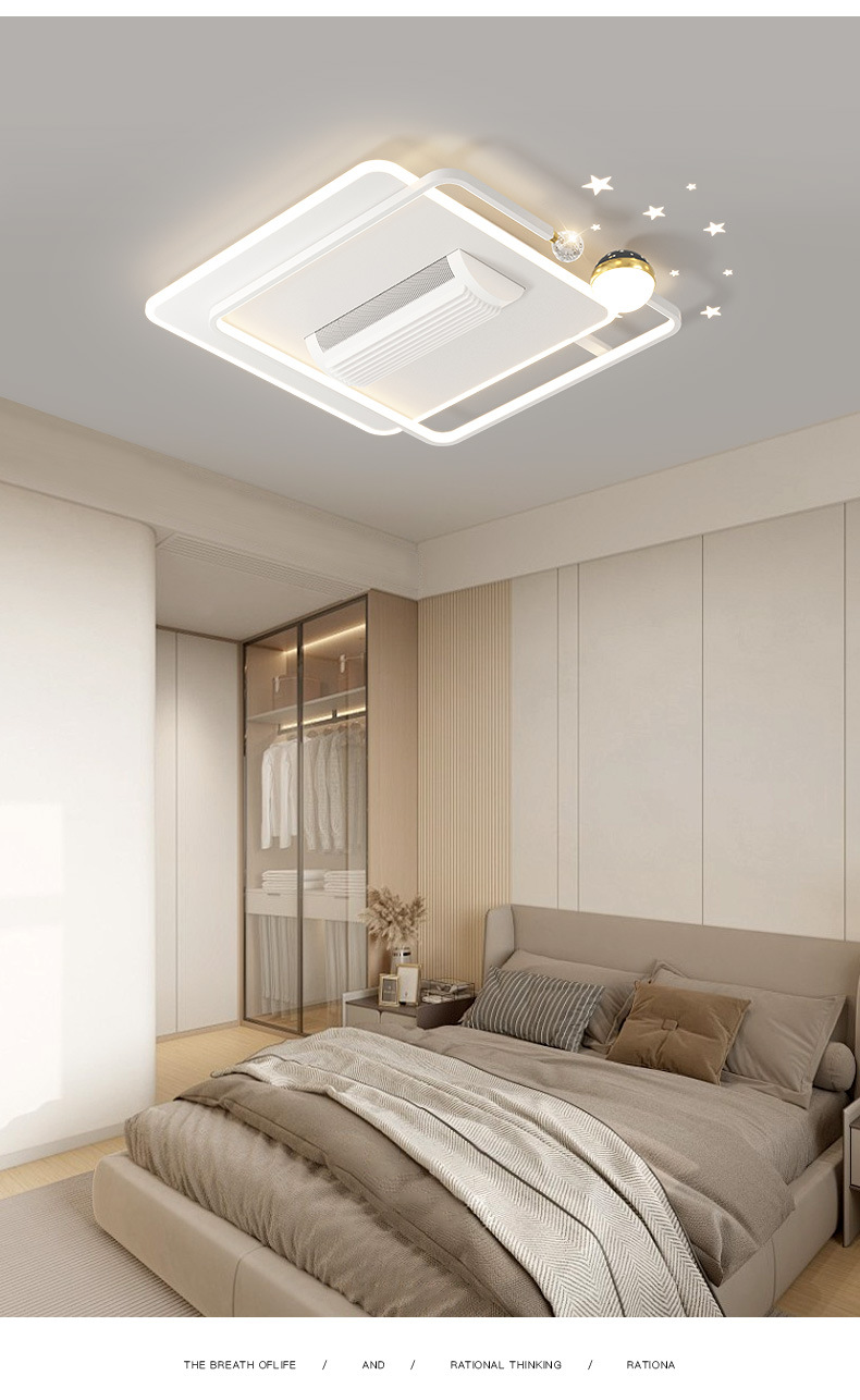 Voz fuera de línea de espectro completo gran viento ventilador sin hoja lámpara de techo moderna simple sala de estar dormitorio paquete de lámparas