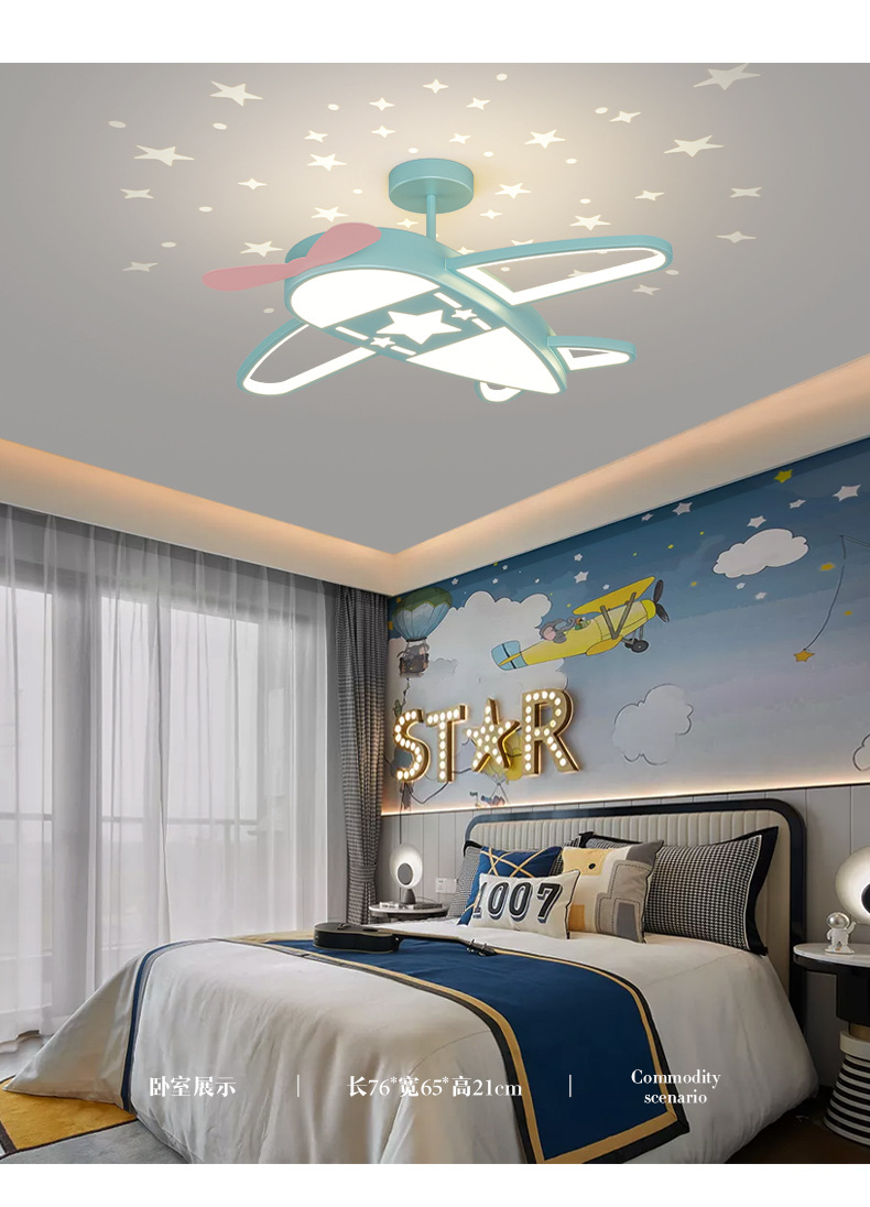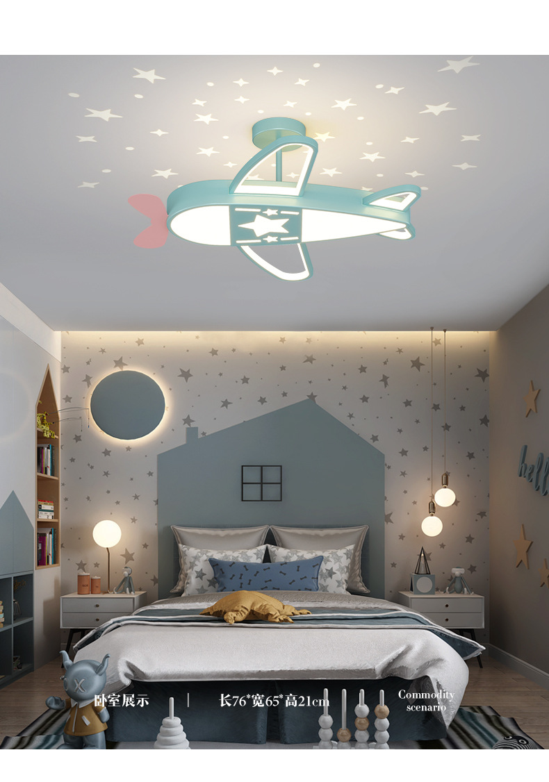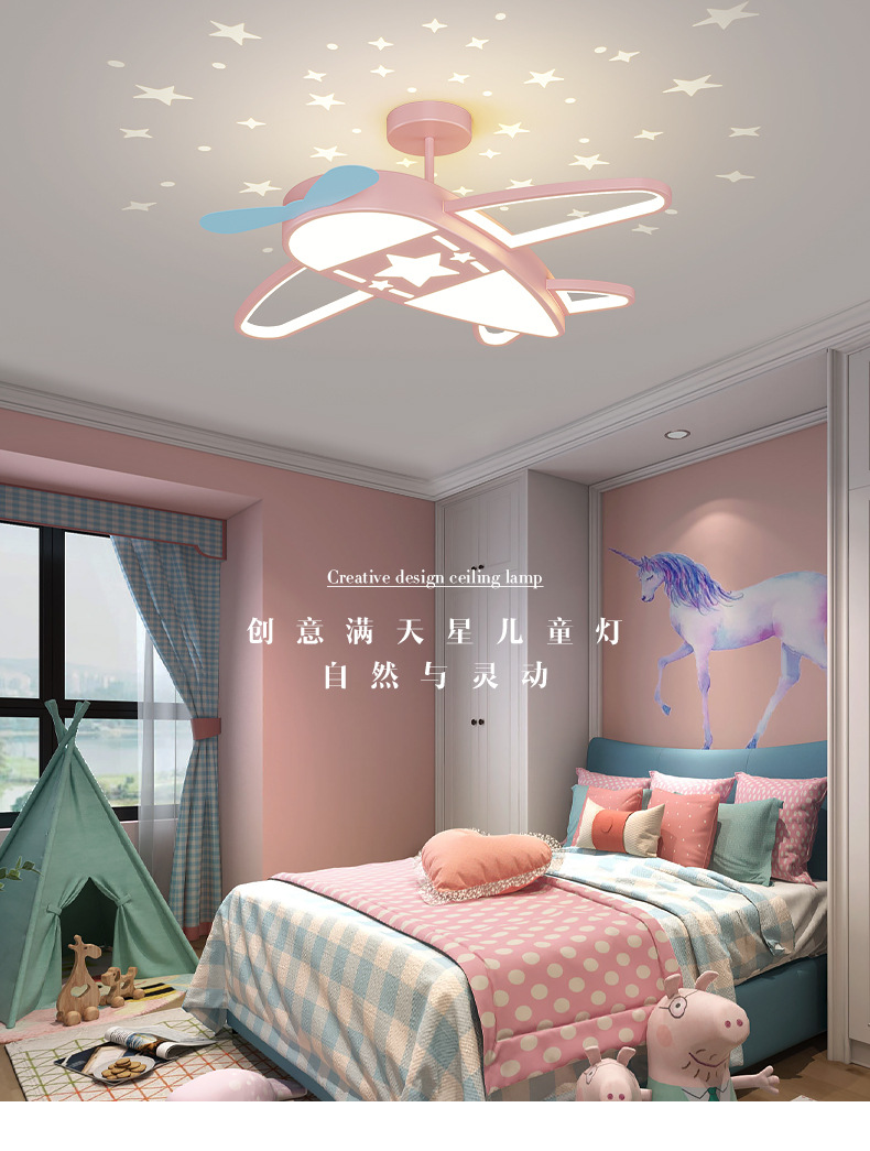 [Selección estricta] lámpara de techo de la habitación de los niños personalidad estrellada aviones nórdicos para niños y niñas lámparas de habitación