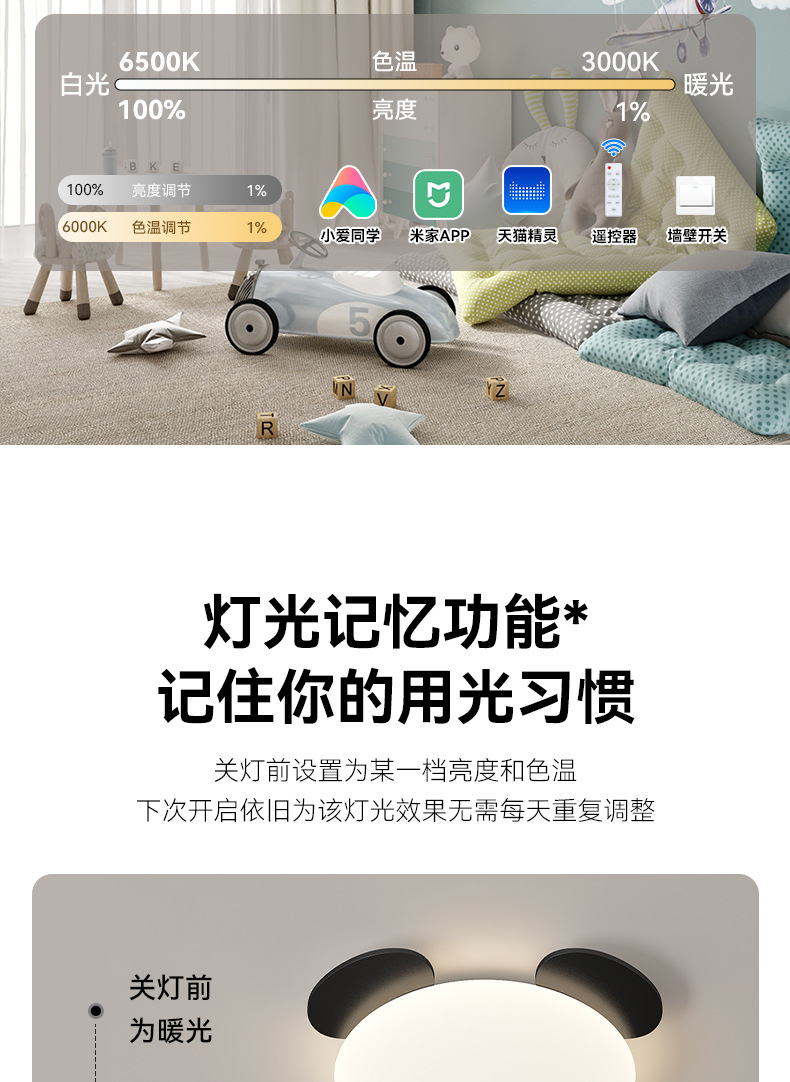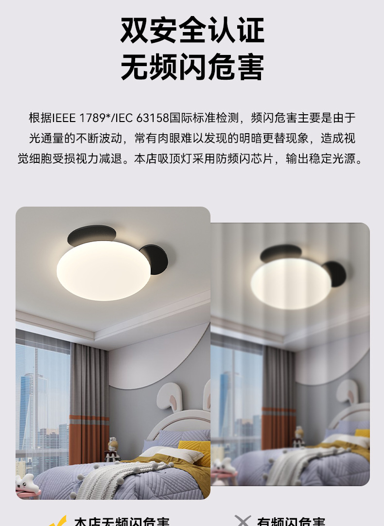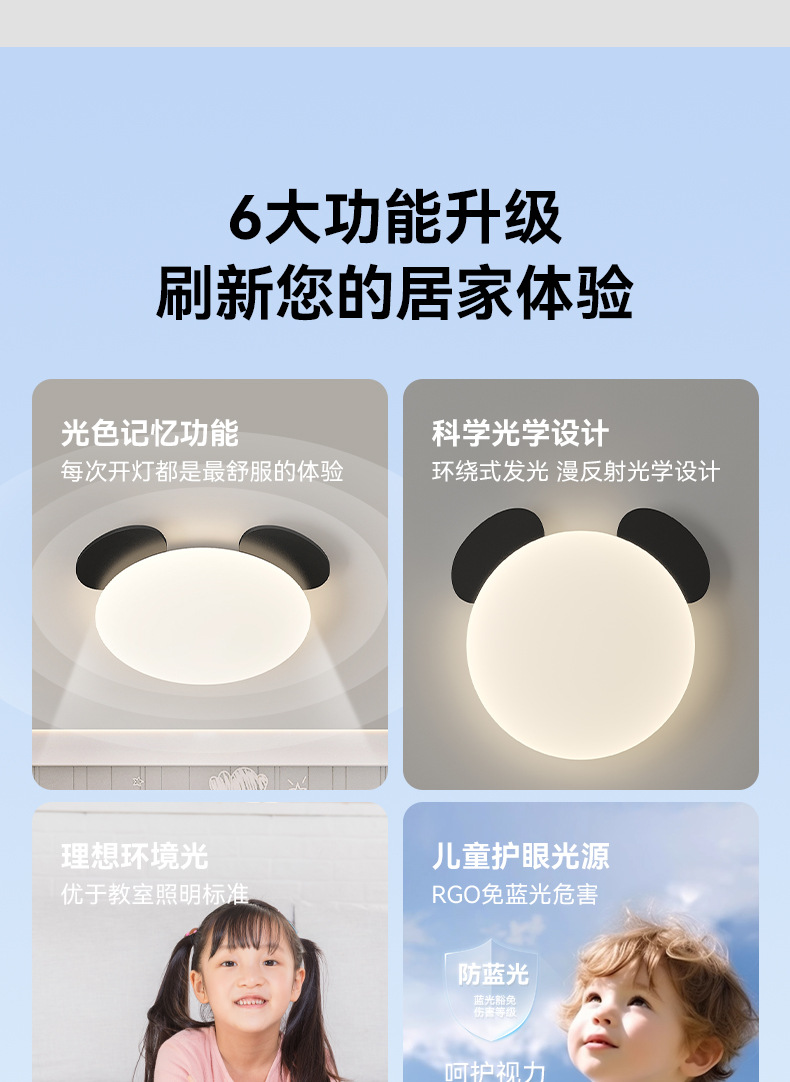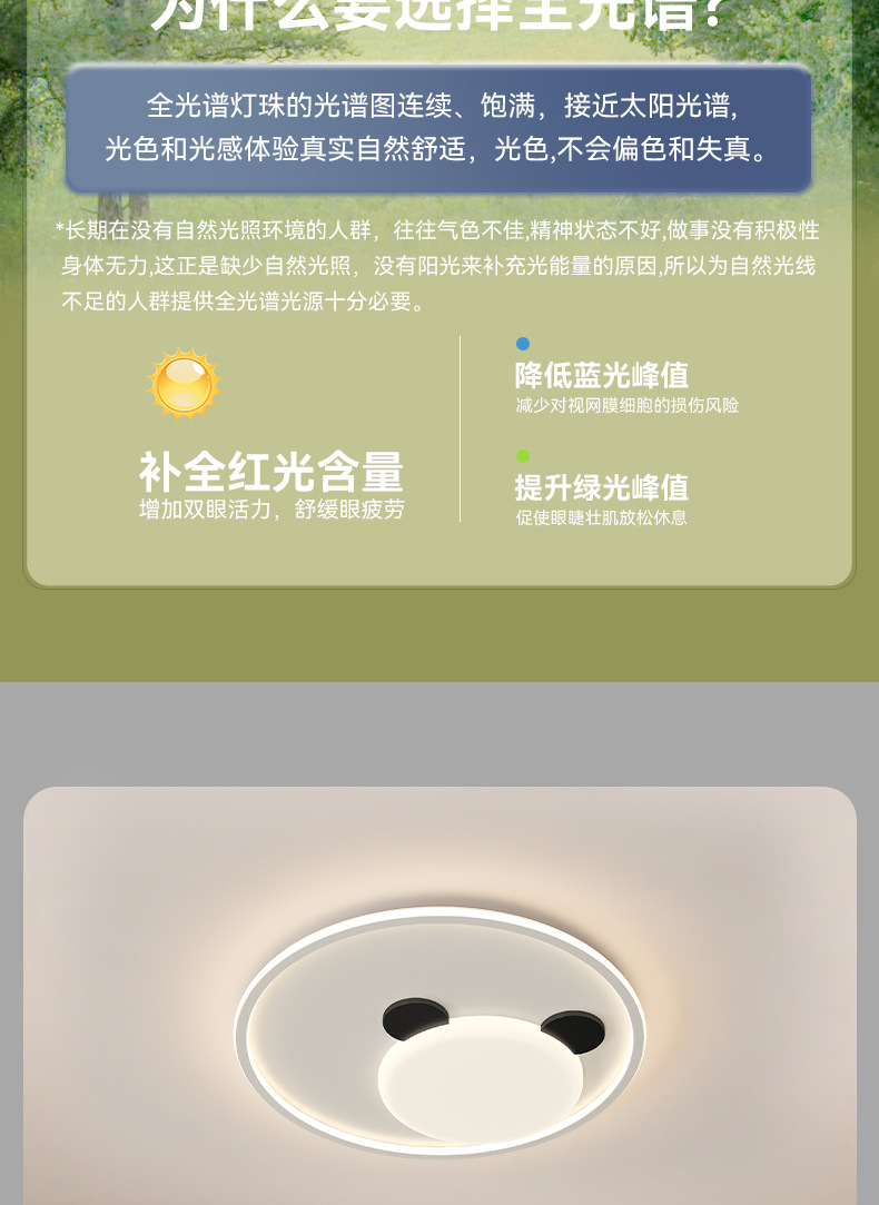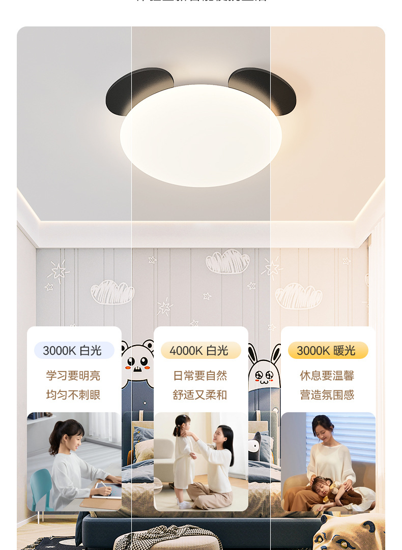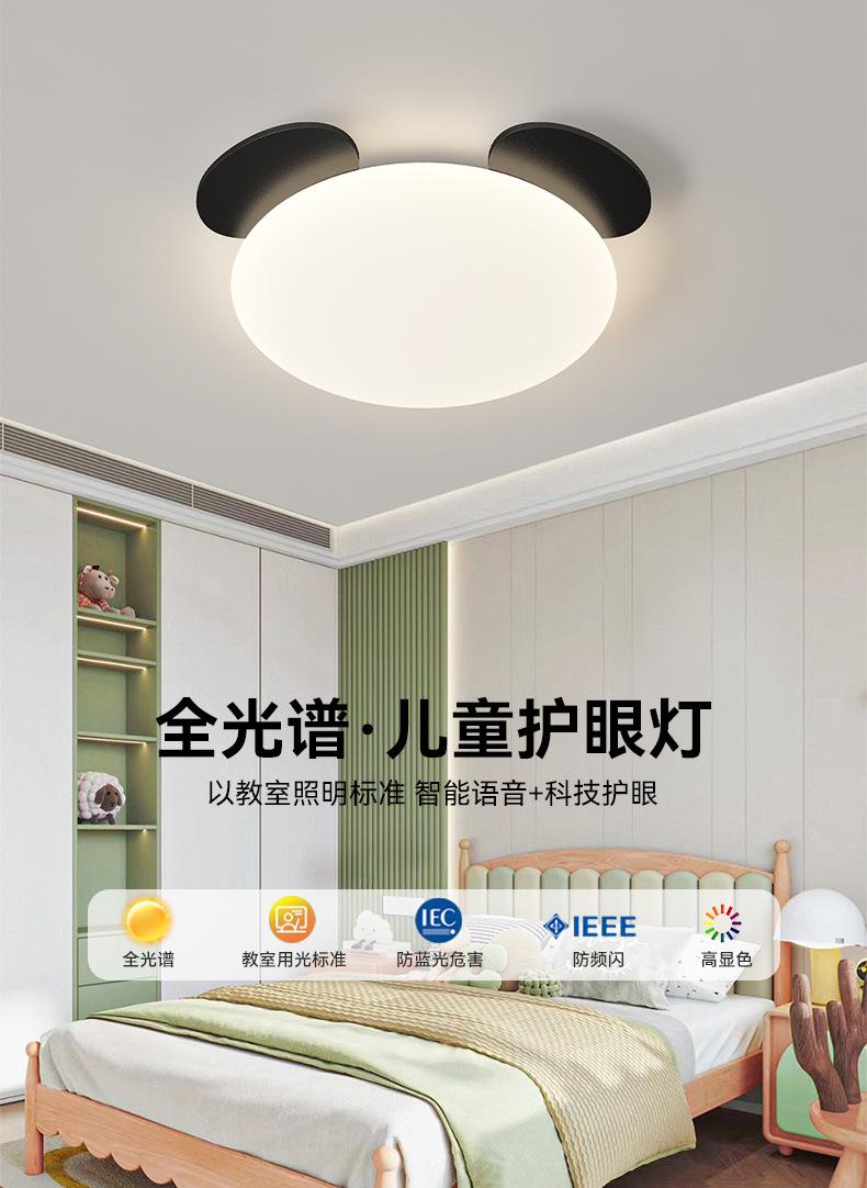 2025 nueva habitación de niños panda de espectro completo protector de ojos lámpara de techo ultra delgada lámpara de dormitorio para niños y niñas lámpara de dormitorio principal