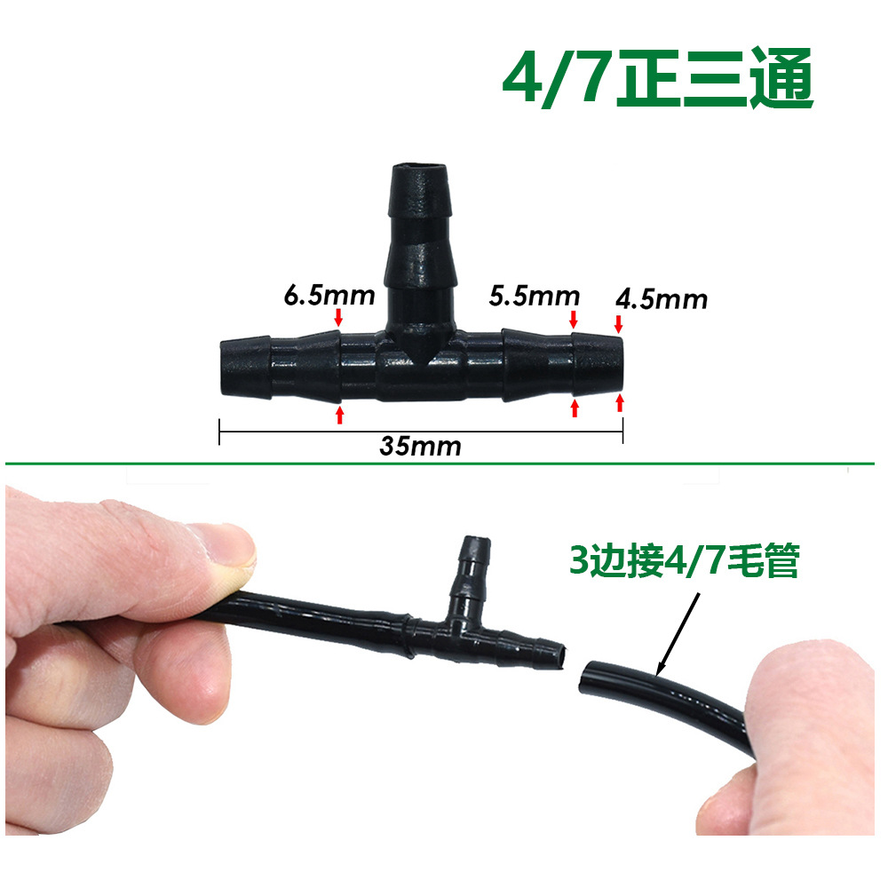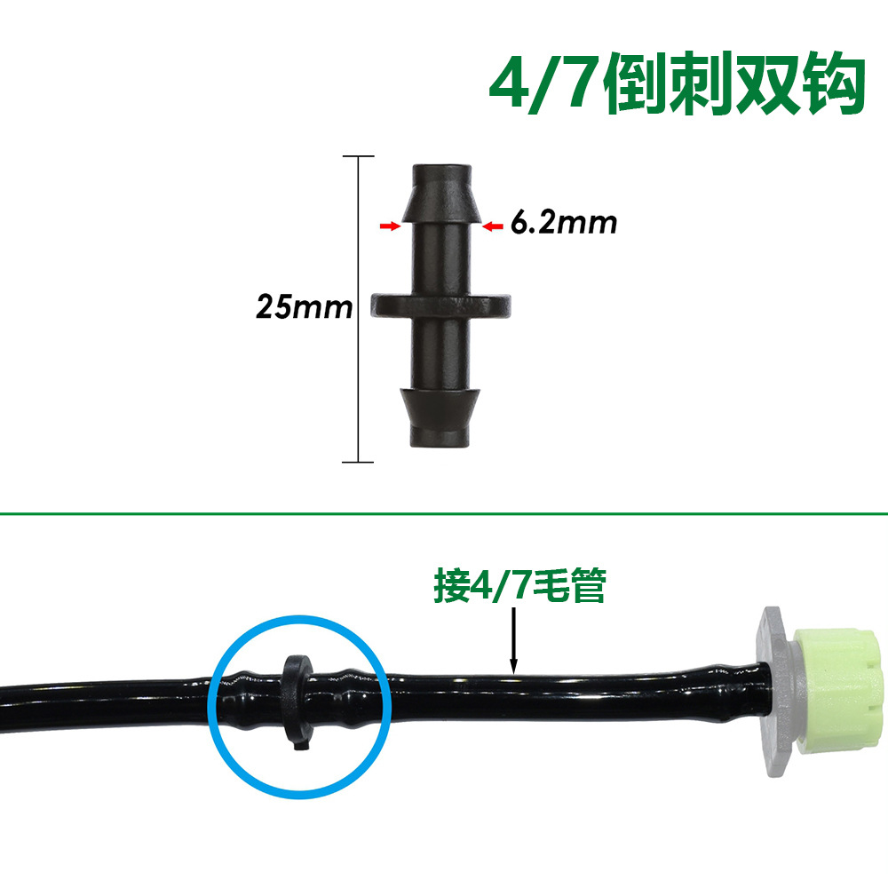 Accesorios de junta de riego de jardinería 4 / 7 conector de riego de goteo / doble barbado / conector de riego de jardín