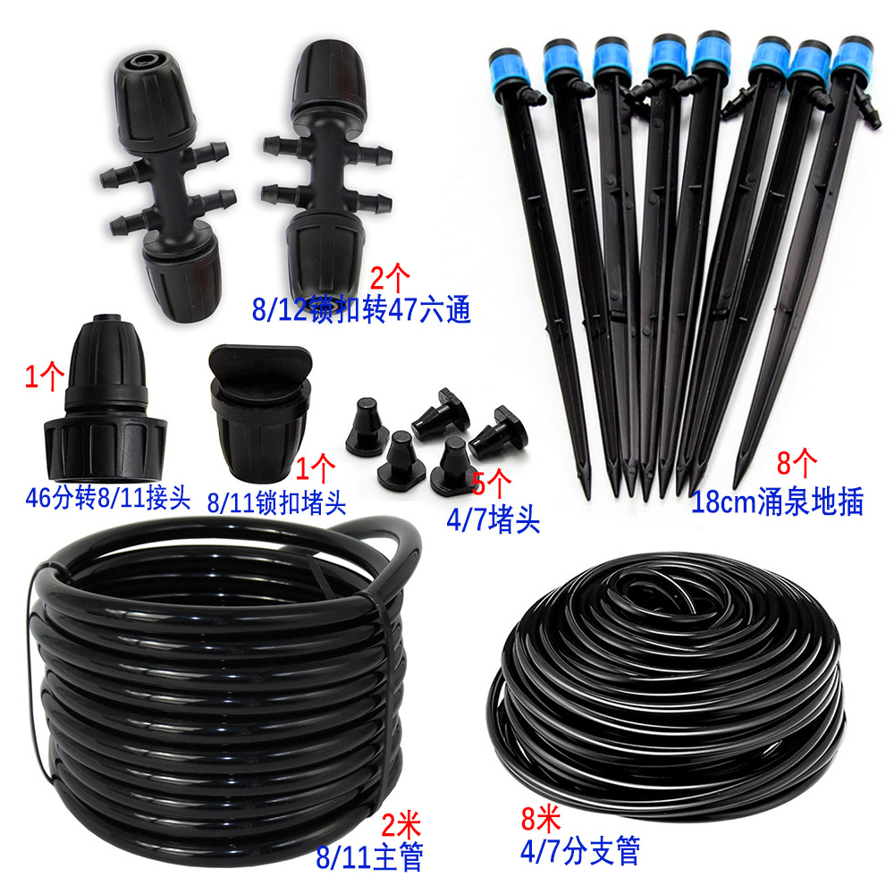 Comercio exterior venta caliente horticultura sistema de riego de riego de goteo conjunto de riego de árboles frutales accesorios de micro pulverización riego de flores automático