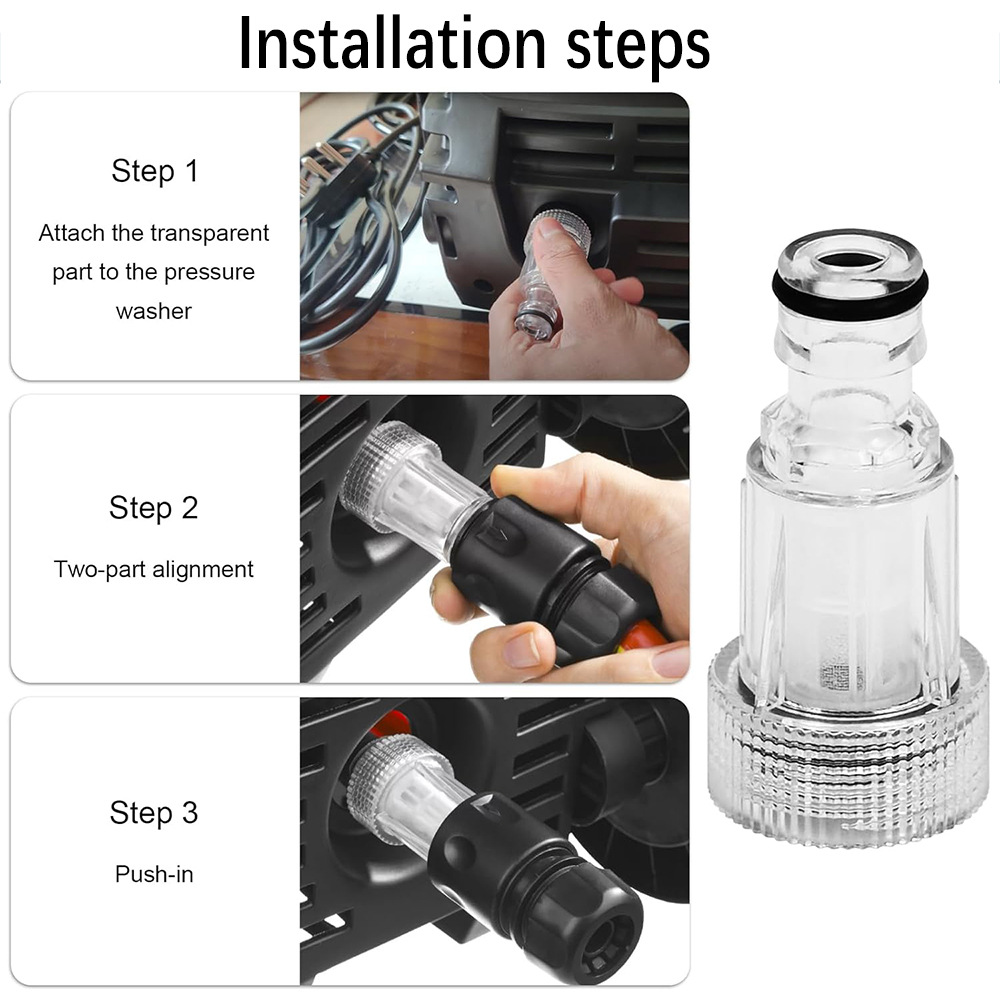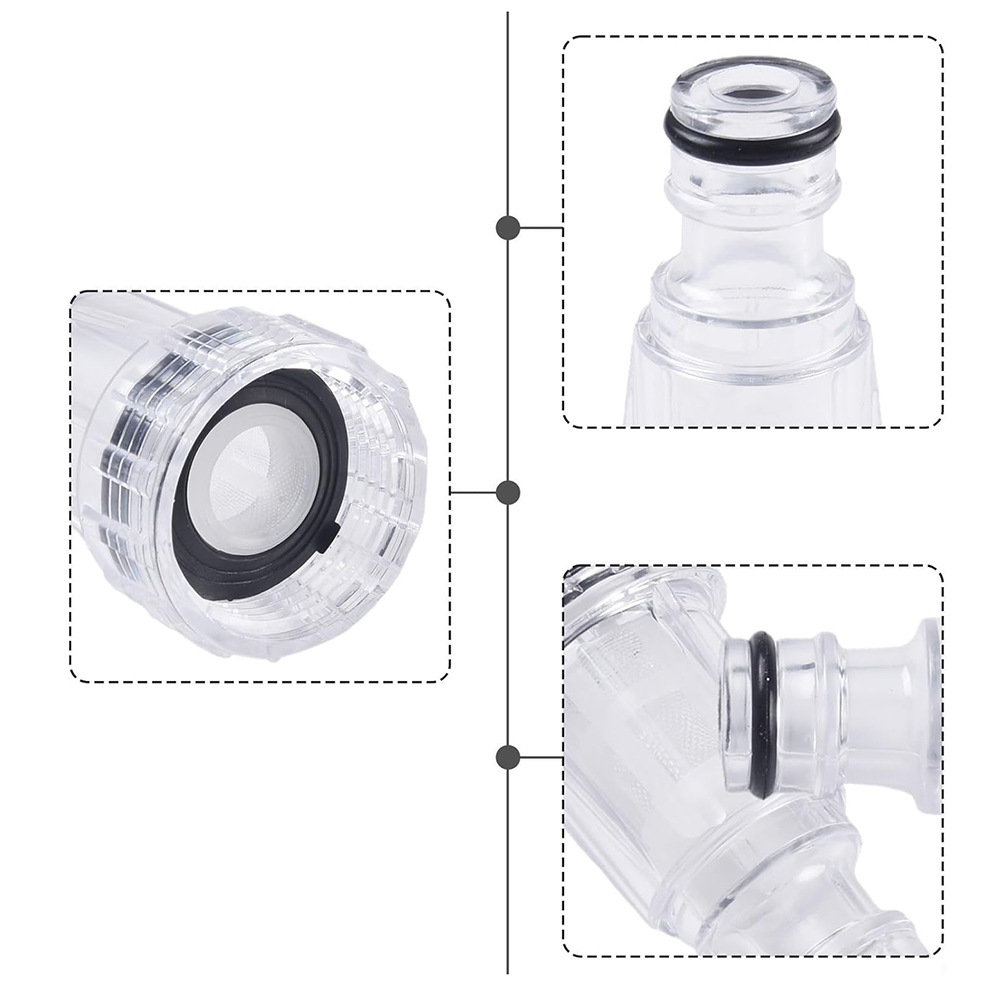 Máquina de limpieza, junta de chupete, lavadora de automóviles, filtro de entrada de agua, junta de entrada de agua de plástico transparente, junta de tornillo rápido con