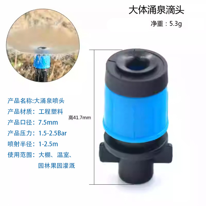 | Especificaciones | Aspersor de fuente de gran calibre de 7,5 mm |