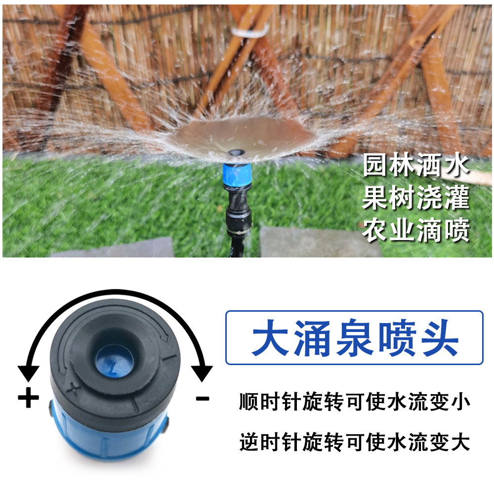 360 grados goteo horticultura árboles frutales agua automática de riego de flores de fuente de primavera de cabeza grande ajustable
