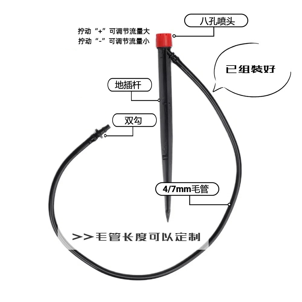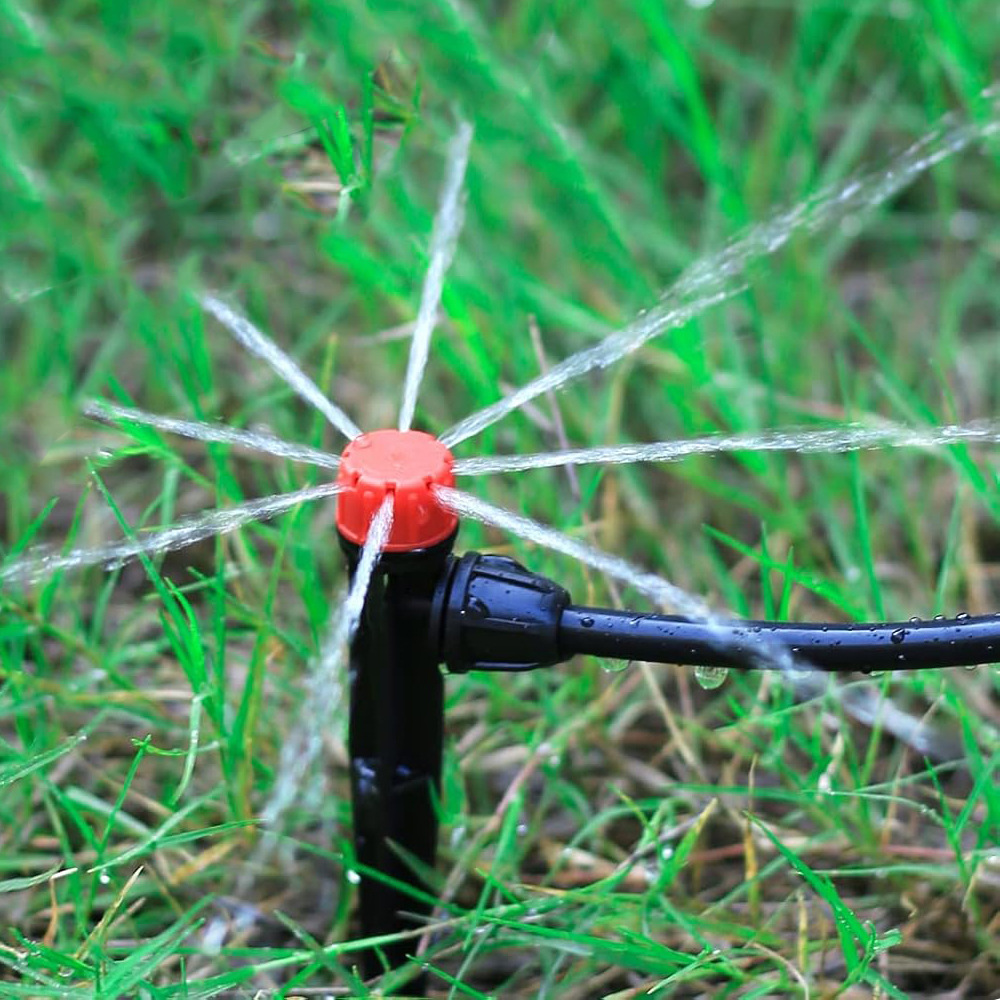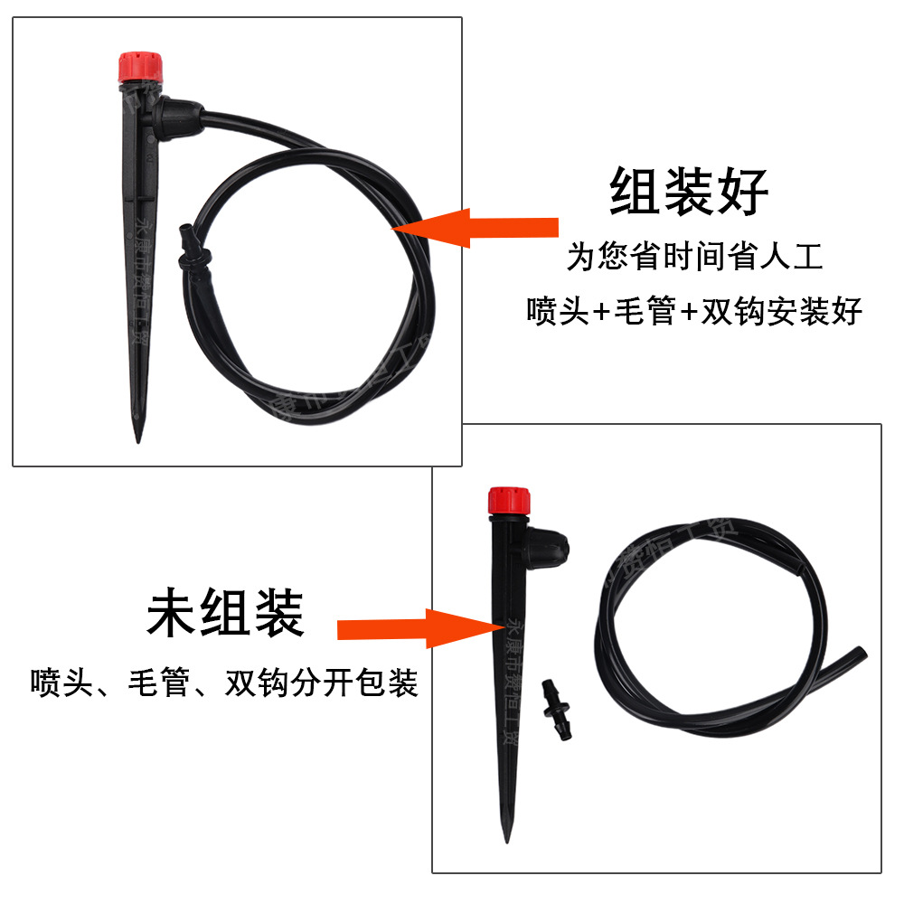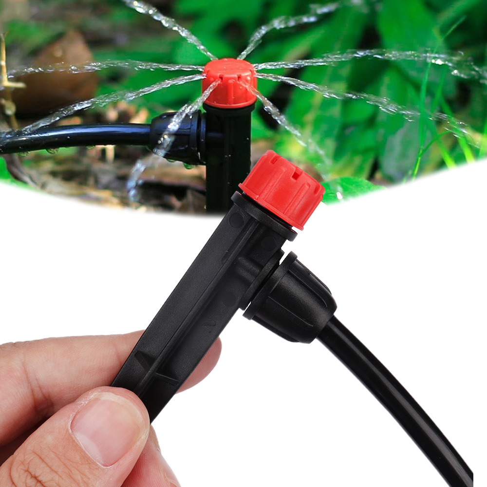 Pequeña capilla roja de ocho agujeros insertando boquilla de pulverización ajustable para riego automático de flores y riego de micro boquilla de riego por goteo de huerto con tubo capilar