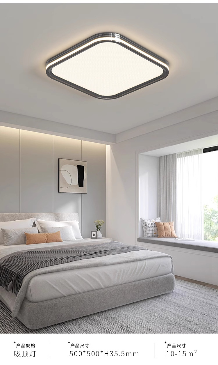 Luz de sala de estar de espectro completo, lámpara principal, lámpara de techo, iluminación para el hogar, lámpara de dormitorio moderna y minimalista, lámpara Zhongshan negra