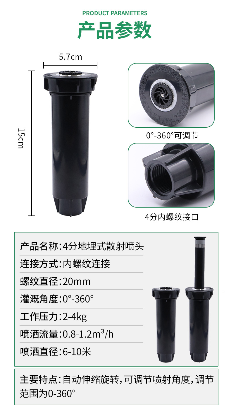 4 puntos no pájaros lluviosos 1800 elevación enterrada 360 grados rociador telescópico ajustable jardín de césped regado riego