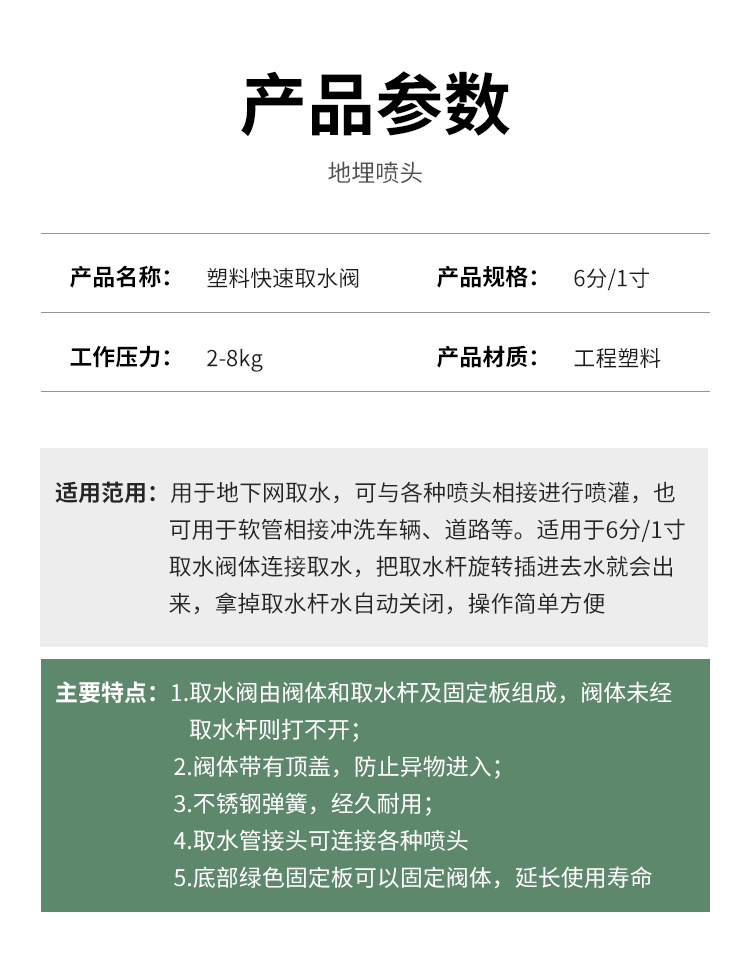 | Especificaciones | Conjunto de válvula de extracción de agua de 1 pulgada, cuerpo de válvula de extracción de agua de 1 pulgada + barra, cuerpo de válvula de extracción de agua de 1 pulgada, conjunto de válvula de extracción de agua de 6 puntos, cuerpo de válvula de extracción de agua de 6 puntos + barra, cuerpo de válvula de extracción de agua de 6 puntos, Cuerpo de válvula de extracción de agua de 6 puntos de leo, cuerpo de válvula de extracción de agua de 6 puntos de leo, poste de extracción de agua de 6 puntos de Leo + codo, barra de extracción de agua de 6 puntos + codo + chupete, placa fija de 6 puntos, placa fija de 1 pulgada, poste de extracción de agua de 1 pulgada + codo + chupete |