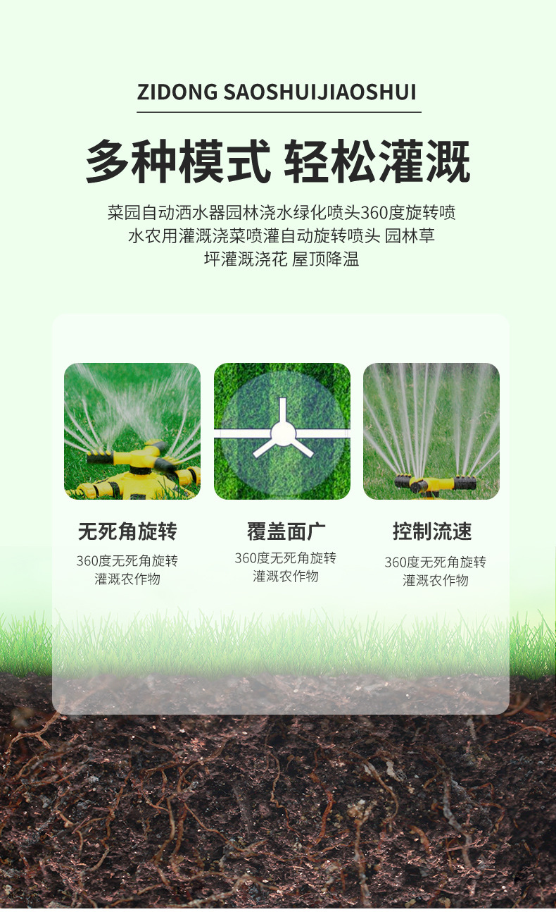 360 grados rociador rotatorio automático boquilla de rociador de tres puntas herramienta de riego de jardín artefacto de riego de flores ángulo ajustable