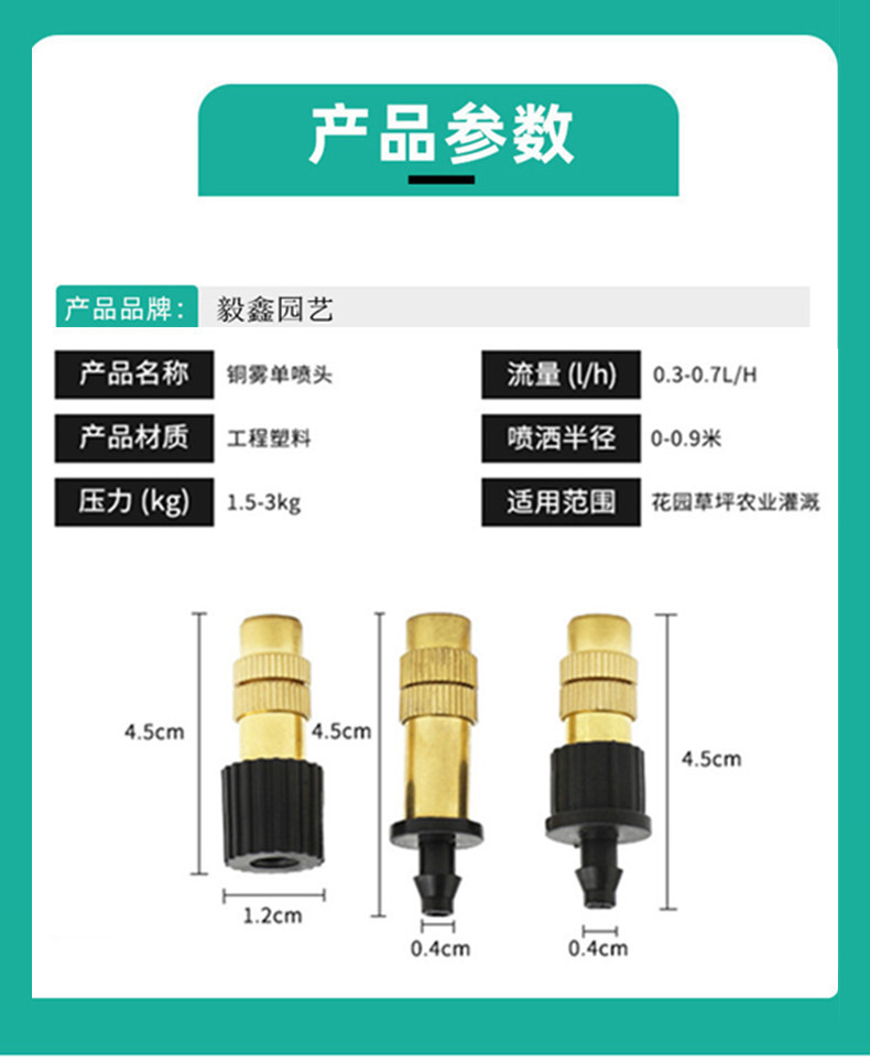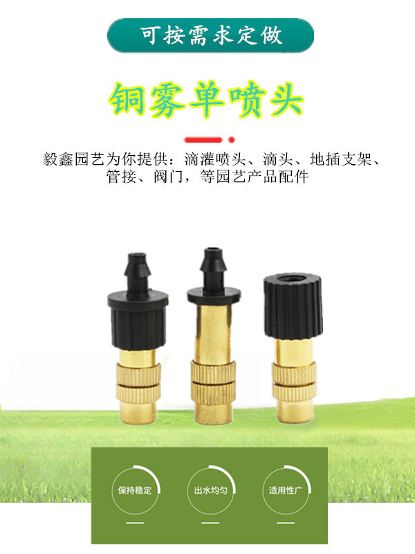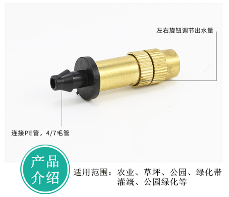 Riego agrícola que ahorra agua, pulverización de cobre ajustable, césped de jardinería de una sola pulverización, se puede cerrar la boquilla de cobre, montaje de la boquilla de atomización
