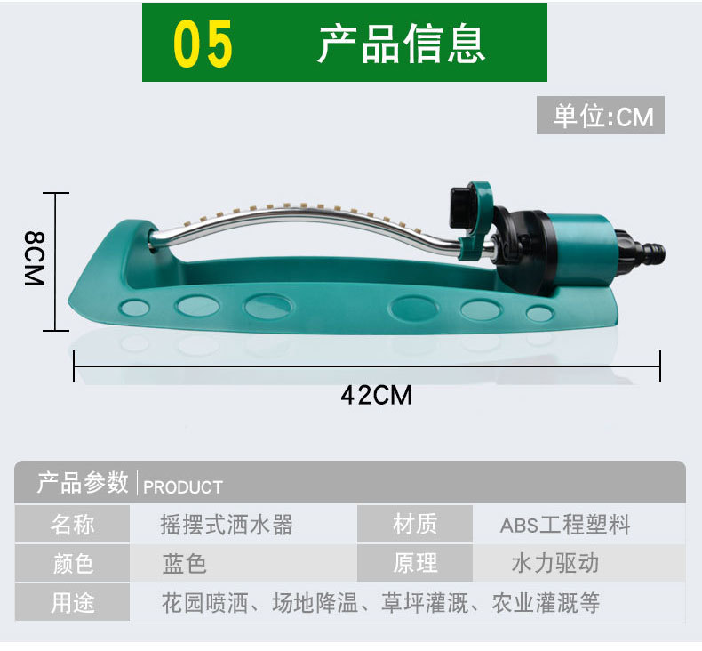 180 ° rociador automático de 19 orificios rociador oscilante herramientas de riego de jardín herramientas de riego de césped verde al por mayor