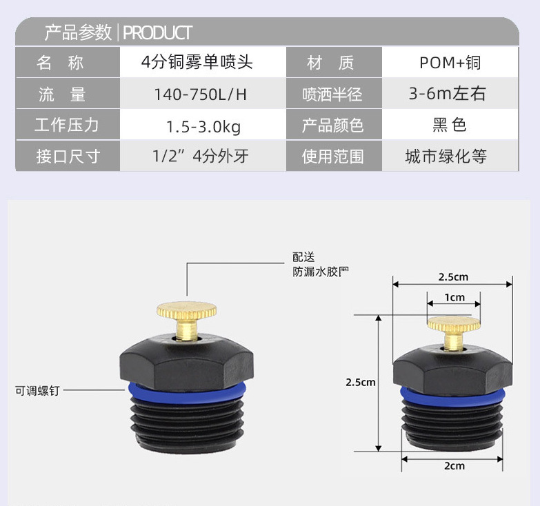 Cuerpo de clavos de cobre 4 puntos de plástico de escritorio centrífugo pulverizador 360 grados jardín césped riego techo enfriamiento pulverizador de polvo