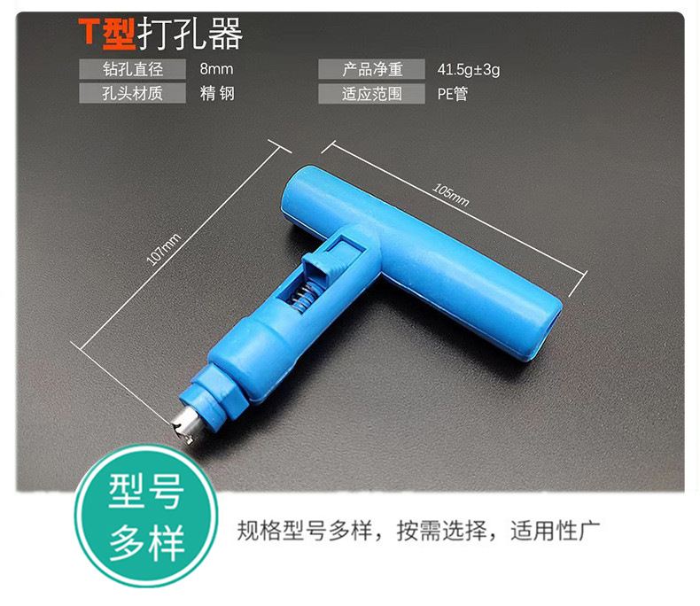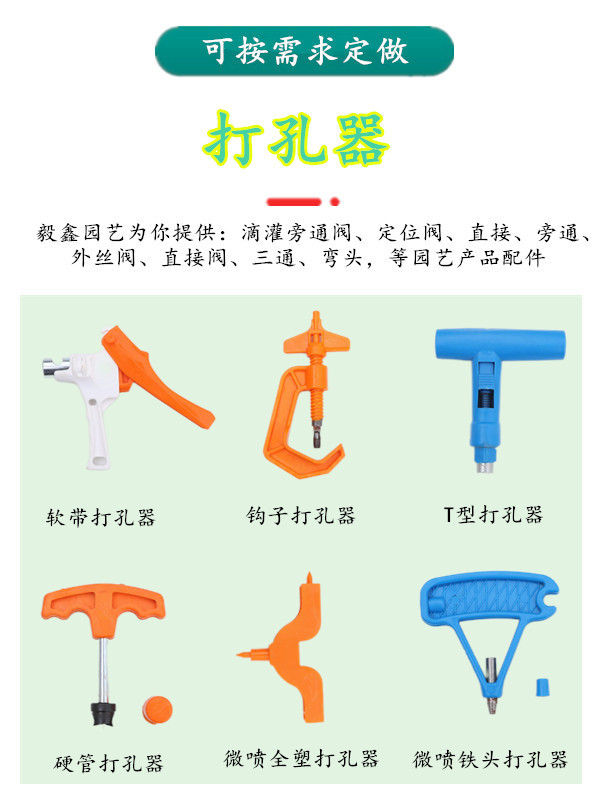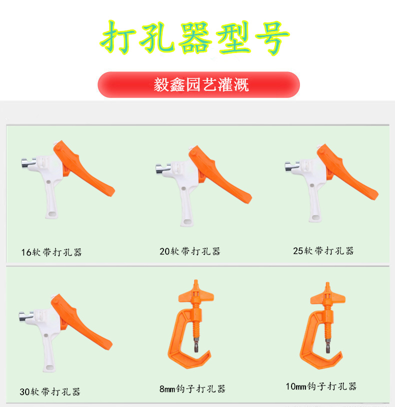 Agro de riego por goteo de cinta blanda perforador de cinta PE flexible perforador de hierro de plástico junto a manguera de cinta micro pulverización T-type perforador