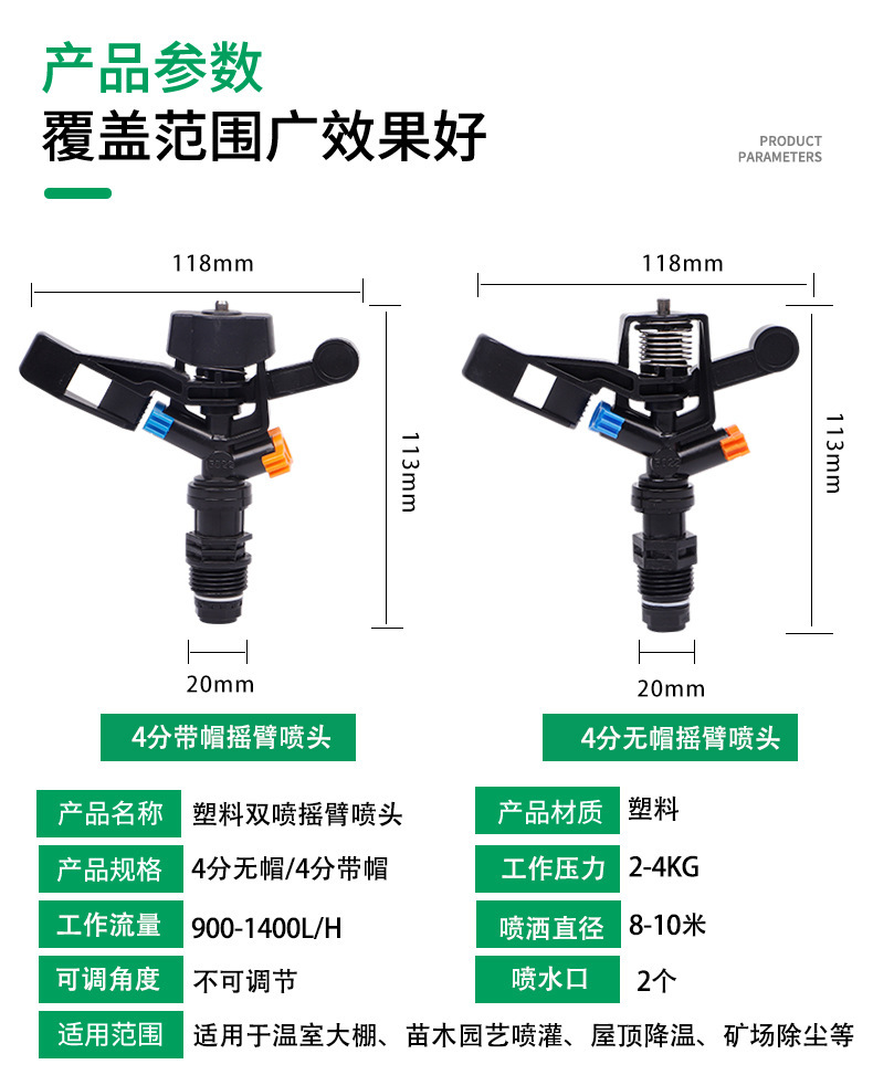 Fuente de la fábrica 4 puntos de plástico Rocker ARM boquilla 5022 rociadores de césped equipos de riego agrícola refrigeración eliminación de polvo regar verduras