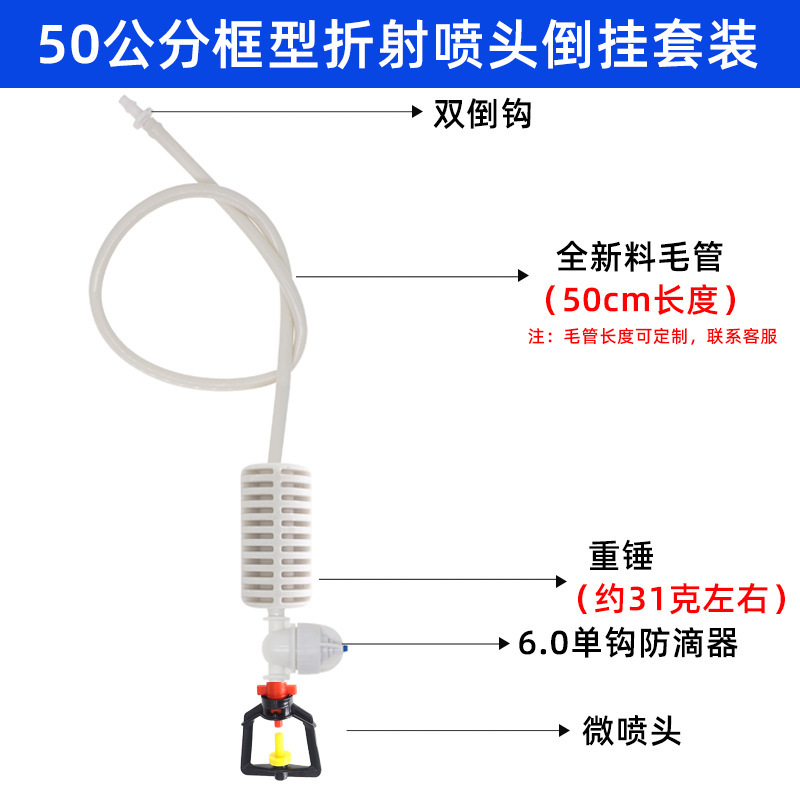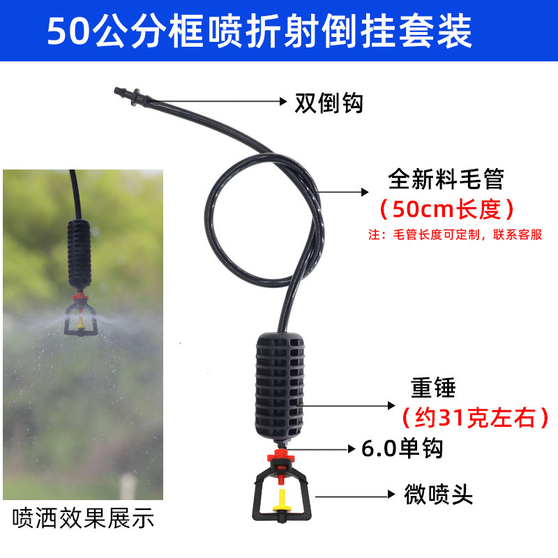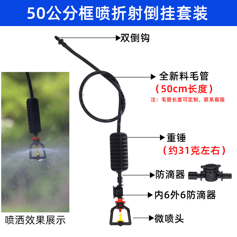 Juego de micro aspersión colgante, marco de 360 grados de invernadero, micro aspersión giratoria, fresa, aspersión al revés, enfriamiento y humidificación de plántulas