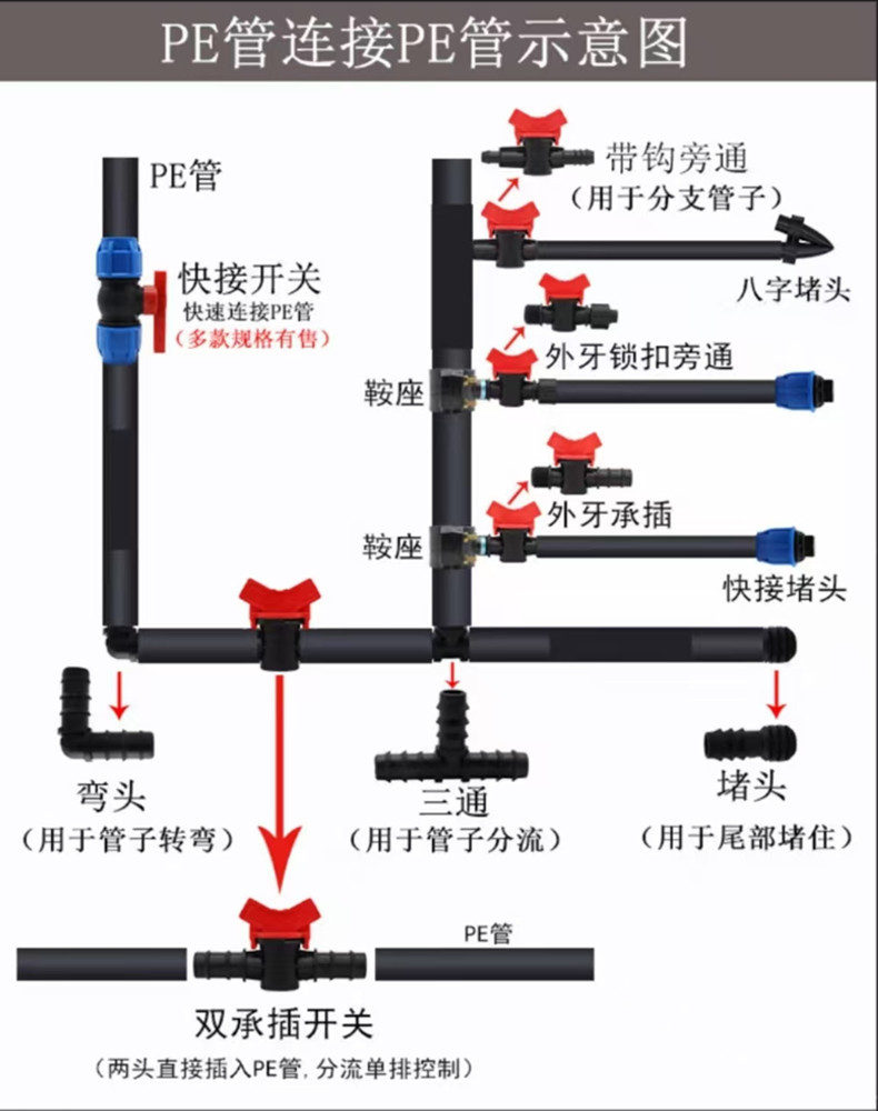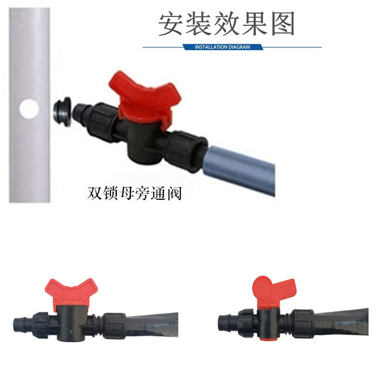 Válvula de derivación de posicionamiento al por mayor tubería agrícola PE válvula de derivación de bloqueo hembra simple a través del interruptor accesorios de tubería de riego por goteo