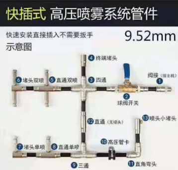 9.52 asiento de pulverización de conexión rápida accesorio de humidificador textil de pulverización de atomización de alta presión tubo de PE de alta presión conector de conexión rápida