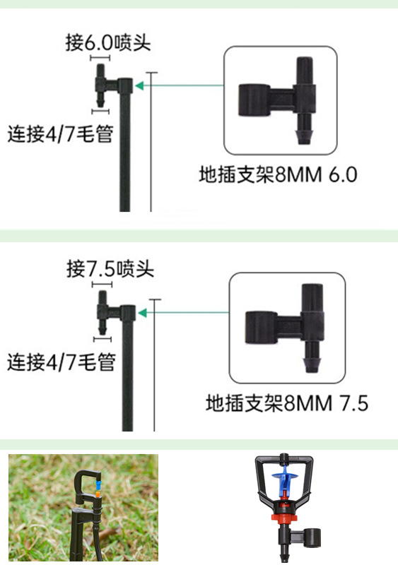 Los fabricantes suministran soporte de un solo orificio para jardinería, soporte de cabezal de riego de flores verdes, soporte de plástico al por mayor