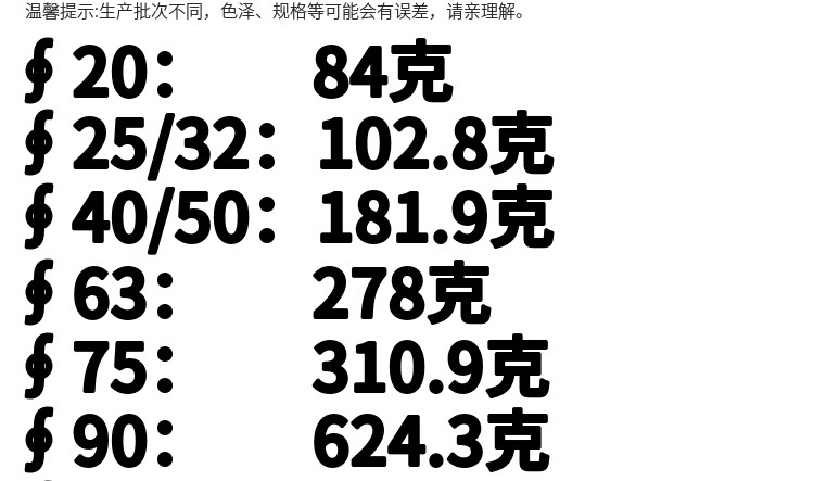 | Especificaciones del producto | 20 circlip tipo General de cobre núcleo de la válvula (84g),25/32 Tipo de anillo de seguridad Núcleo de válvula de cobre general (102,8G),40/50 circlip tipo General núcleo de la válvula de cobre (181,5G),63 circlip tipo general núcleo de válvula de cobre (278g),75 tipo circlip General núcleo de la válvula de cobre (310,9G),90 circlip tipo General de cobre núcleo de la válvula (624,3G),110/160 circlip tipo general núcleo de válvula de cobre (800g) |