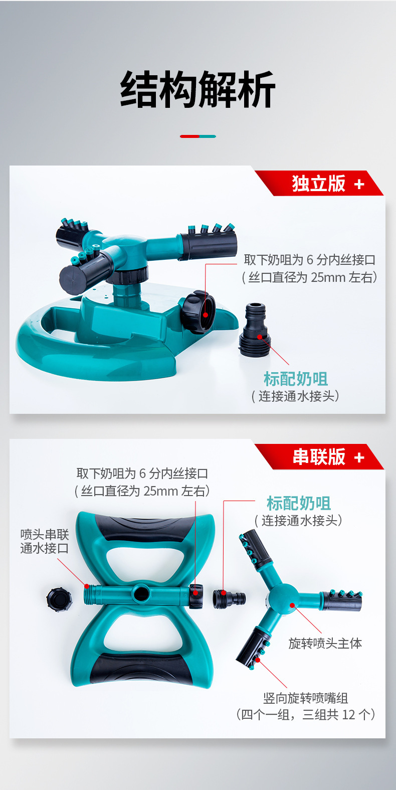 Jardín Greening rociador giratorio rociador creciente rociador giratorio automático de 360 grados rociador de riego agrícola césped