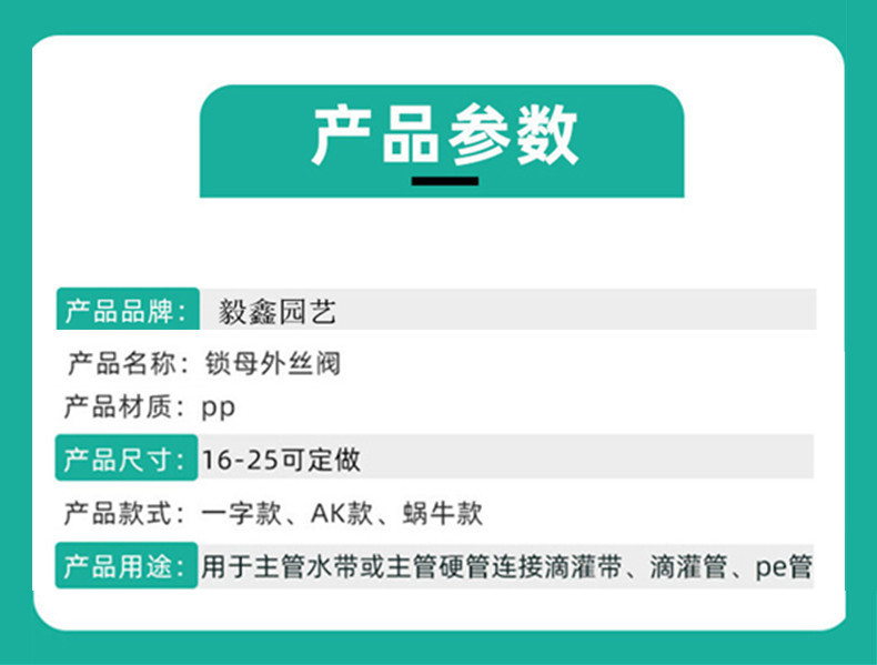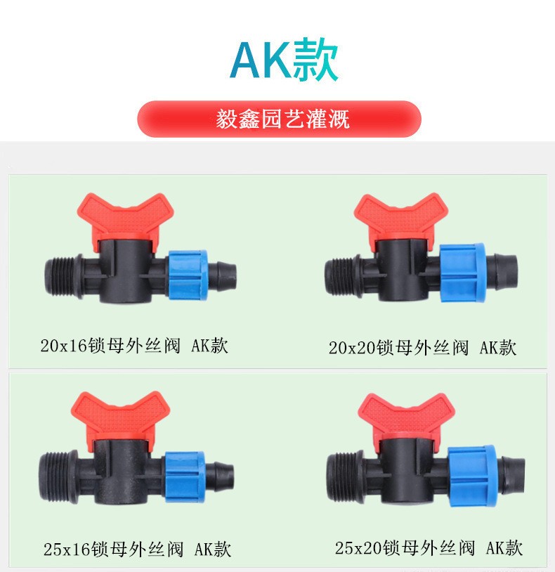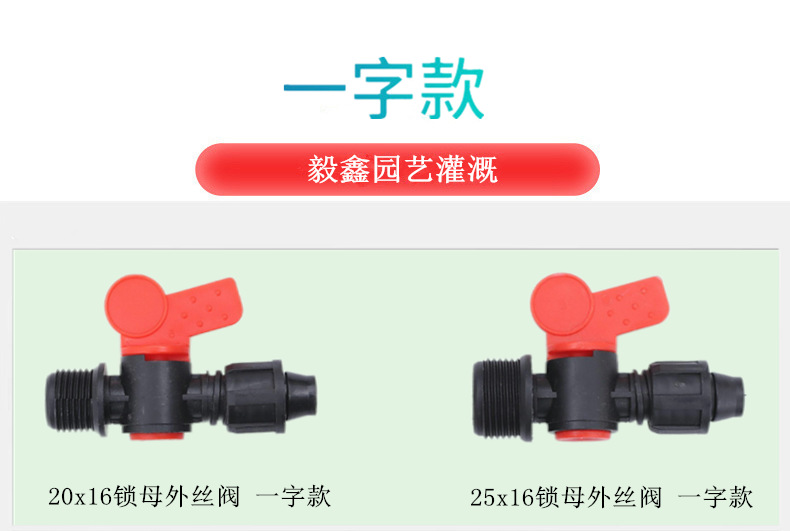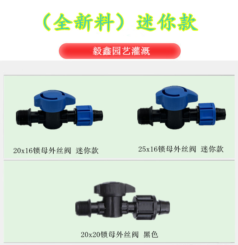 Accesorio de interruptor de válvula para interruptor de riego agrícola, válvula de filamento externa de bloqueo hembra, válvula pequeña para correa flexible de riego de ahorro de agua