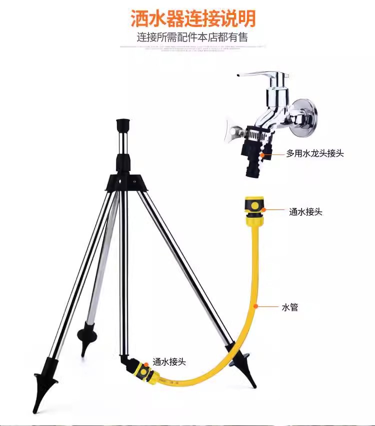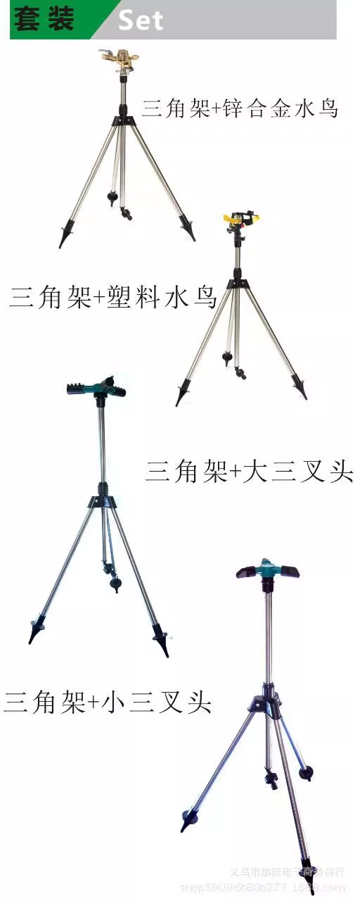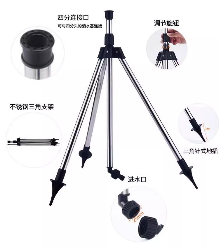 Trípode de acero inoxidable ajustable soporte de riego agrícola Rotación de 360 grados boquilla de brazo oscilante rociador de riego