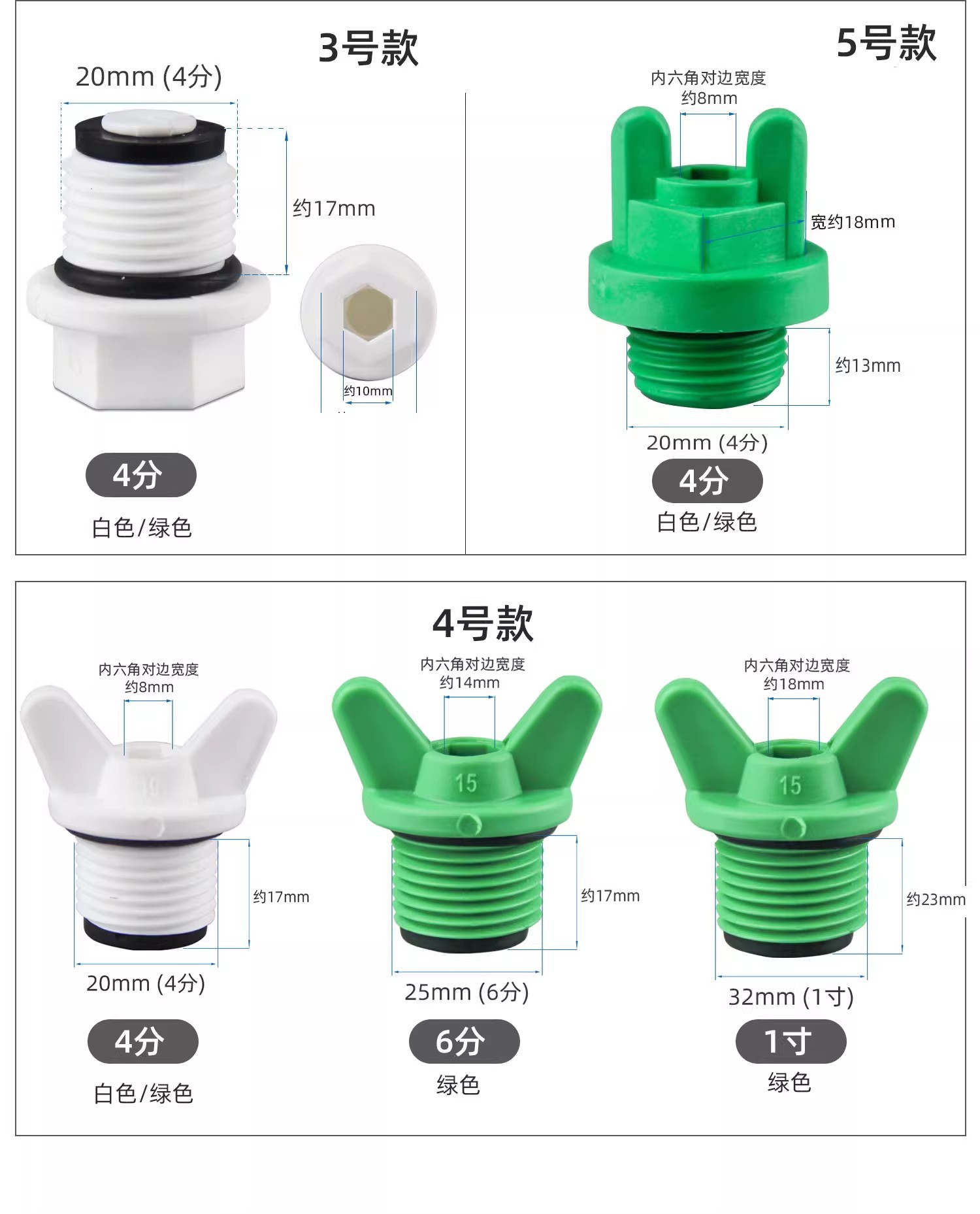 | Especificaciones | Hexagonal 4 puntos blanco (200 piezas) 1 paquete,Hexagonal blanco de 1 pulgada (200 piezas) 1 paquete,4 puntos con oreja Blanco (100) 1 Pack,6 puntos Blanco con orejas (100 piezas) 1 Pack,Cojín doble 4 puntos Blanco (200 piezas) 1 Pack,Cojín Doble 6 puntos Blanco (200 piezas) 1 paquete,Cabeza cuadrada estilo Rifeng 4 puntos Blanco (100 piezas) 1 paquete,Cabeza cuadrada estilo Rifeng 6 puntos Blanco (100 piezas) 1 paquete,Hexagonal 6 puntos Blanco (200 piezas) 1 paquete,Hexagonal 4 puntos Verde (200 piezas) 1 paquete,Hexagonal 6 puntos Verde (200 piezas) 1 Pack,Hexagonal verde de 1 pulgada (100 piezas) 1 paquete,Estilo cuerno Yuefeng 4 puntos Blanco (100 piezas,Cuerno de oveja Rifeng 4 puntos Verde (100 piezas),4 puntos Verde con orejas (100 piezas),6 puntos verdes con orejas (100 piezas),Cojín doble 4 puntos Verde (200 piezas),Doble cojín 6 puntos Verde (200 piezas),Cabeza cuadrada estilo Rifeng 4 puntos Verde (100 piezas),Cabeza cuadrada estilo Rifeng 6 puntos Verde (100 piezas),Tapa de tubo de alambre interno de 4 puntos Blanco (200 piezas),Tapa de tubo de alambre interno de 6 puntos Blanco (200 piezas),Tapa de tubo de alambre interno de 1 pulgada Blanco (100 piezas),4 puntos tapa de tubo de alambre interior verde (200 piezas),Tapa de tubo de alambre interior de 6 puntos verde (200 piezas),1 pulgadas de alambre interior tapa de la tubería verde (100 PCS) |