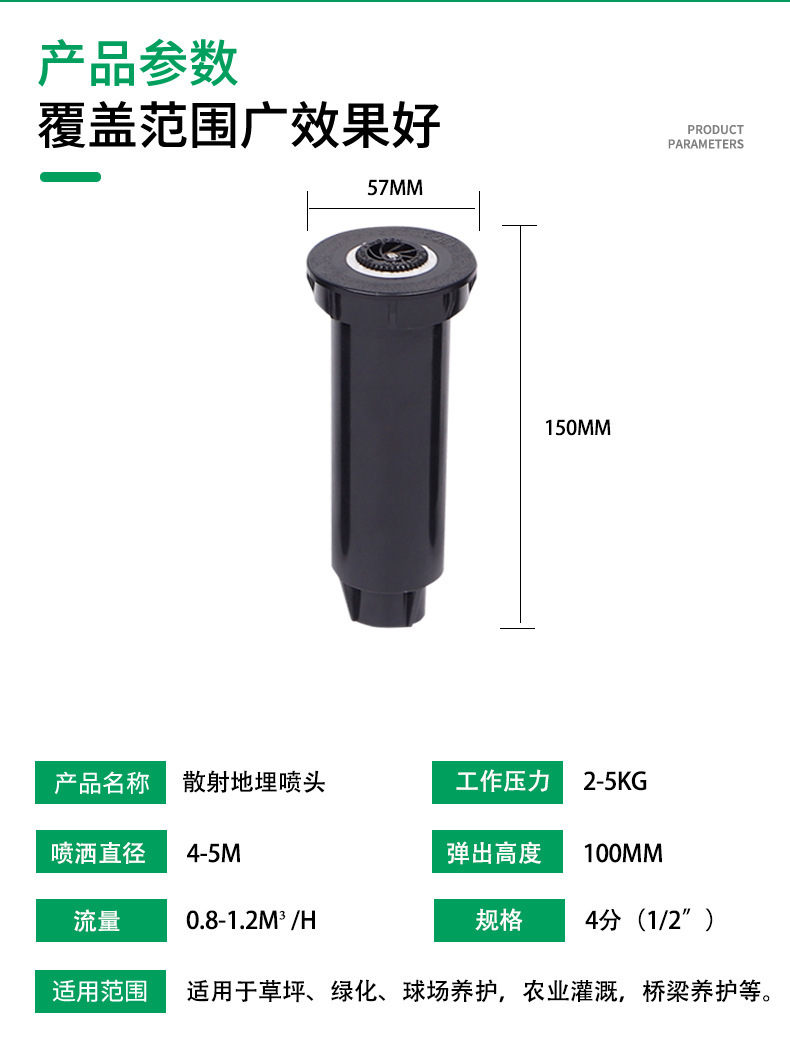 | Especificaciones | 4 cabezal de pulverización de dispersión (8A) con un radio de 2,4 metros,4 cabezal de pulverización de dispersión (10A) con un radio de 2,7 metros,4 cabezal de pulverización de dispersión (12A) radio de 3,6 metros,4 cabezal de pulverización de dispersión (radio 15) 4,5 m,4 cabezal de pulverización de dispersión (17A) radio de 5,1 metros,Rayos 90 grados,Cabeza de pulverización de rayos 180 grados,Radiogrado,Spray de rayos 360 grados,45-270 grados de boquilla ajustable,Cabeza de pulverización ajustable de 360 grados,1800 enterrados,6 puntos de rotación enterrada |